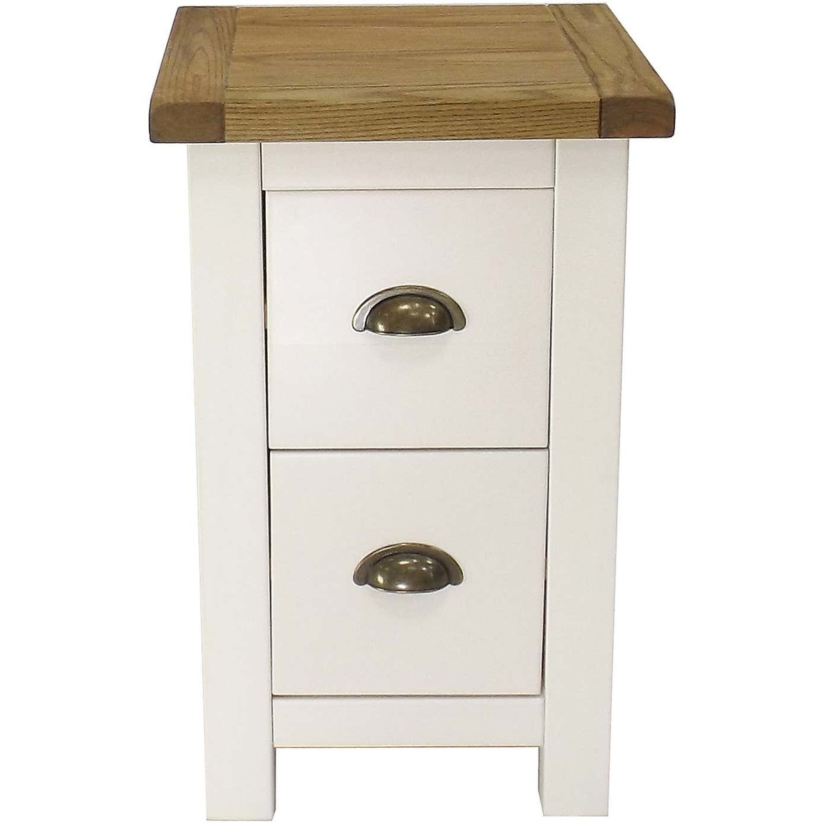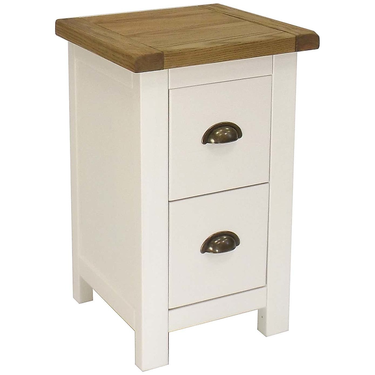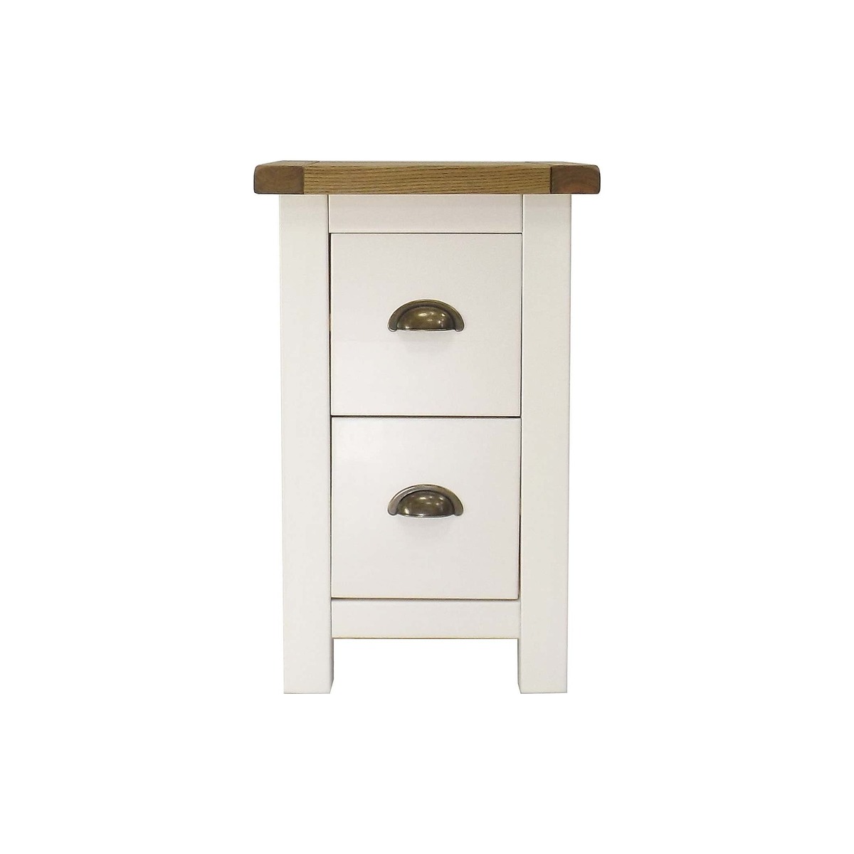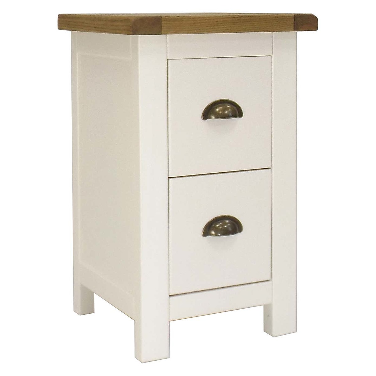 The Kansas 2 Drawer Bedside has a simple and pleasing design produced by skilled craftsmen to the highest standards using solid pine and veneers. This item has a high quality hand waxed finished 30mm thick top with contrast white body, deep drawers and wooden knobs and features simple construction for easy assembly. This product will feel at home in any environment.