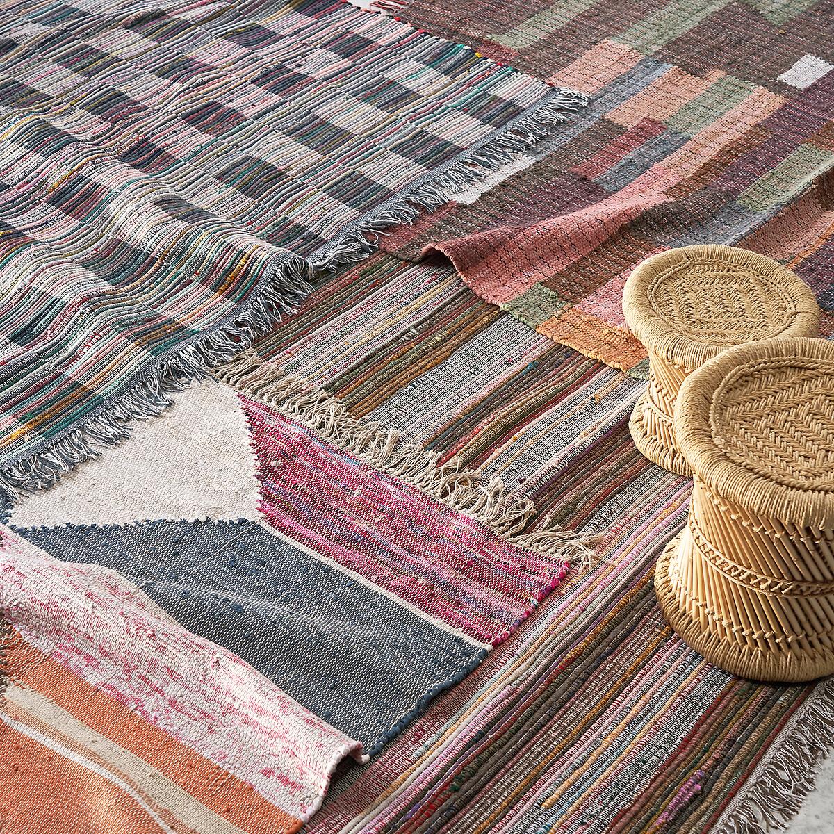 Colours, woven by hand... Make way for an inner change of scenery with Kanta. Product Details • 100% cotton • 2250g/m2 • Flat woven • Fringed edging • Artisanal craftsmanship. Quality Info • Cotton is soft to the touch and fluffy. The cotton rug is easy to maintain, it will also be a good thermal and sound insulator. Sizes • Width 120 x Length 170cm • Width 160 x Length 230cm • Width 200 x Length 290cm • Thickness: 0.5cmDelivery:. Available for home delivery.