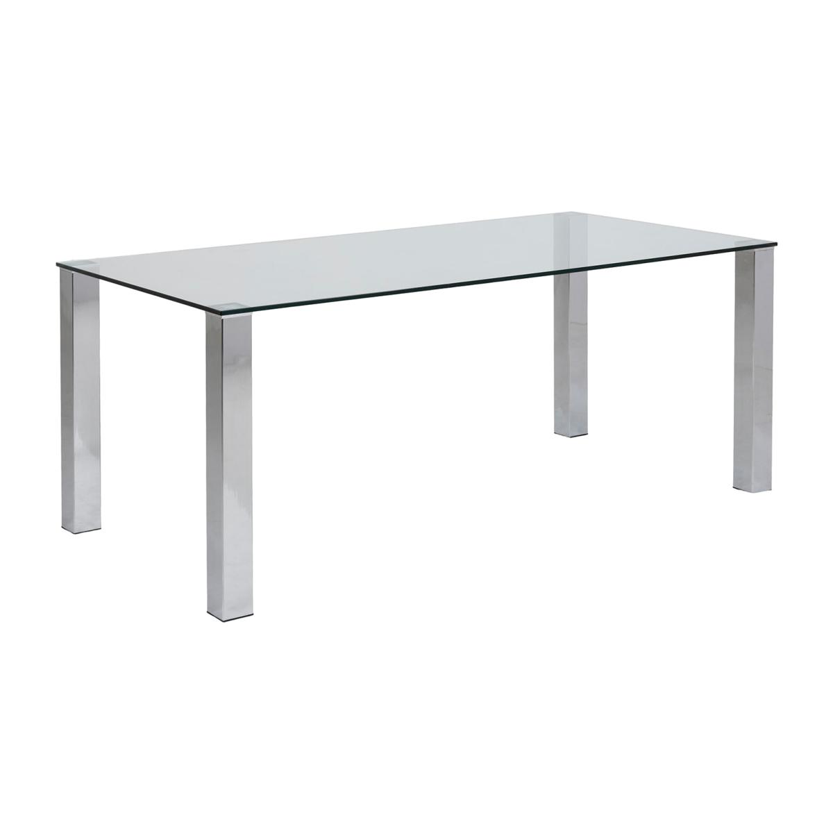 Elevate your dining area with the Kante Dining Table, featuring a clear tempered glass top. This table is supported by a lustrous chrome steel base, offering a clean and contemporary look that complements any decor. Crafted with easy-to-clean materials, it ensures minimal upkeep and makes a great option for busy homes. With a seating capacity of eight people, the table is ideal for families.