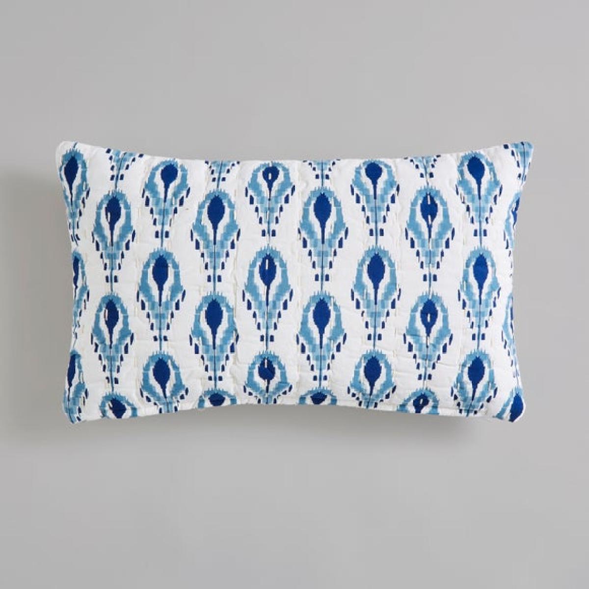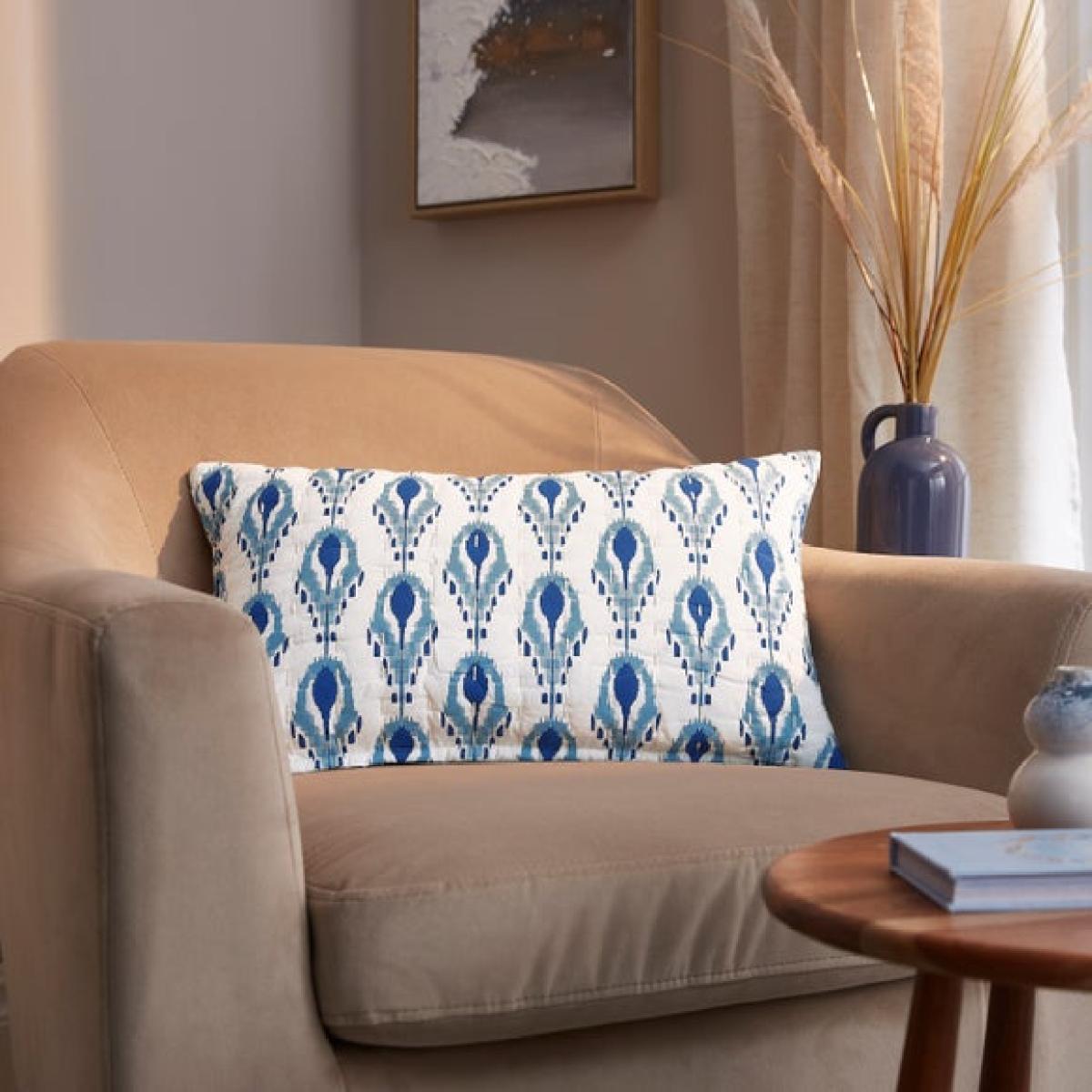 * Zip closure * Matelassé weave * Striking block print * 100% cotton * Machine washable Block print, big impact. This rectangle cushion cover blends tradition with trend in a bold 100% cotton matelassé weave. Zip it up, toss it in the wash, and let the vibrant design do all the talking.