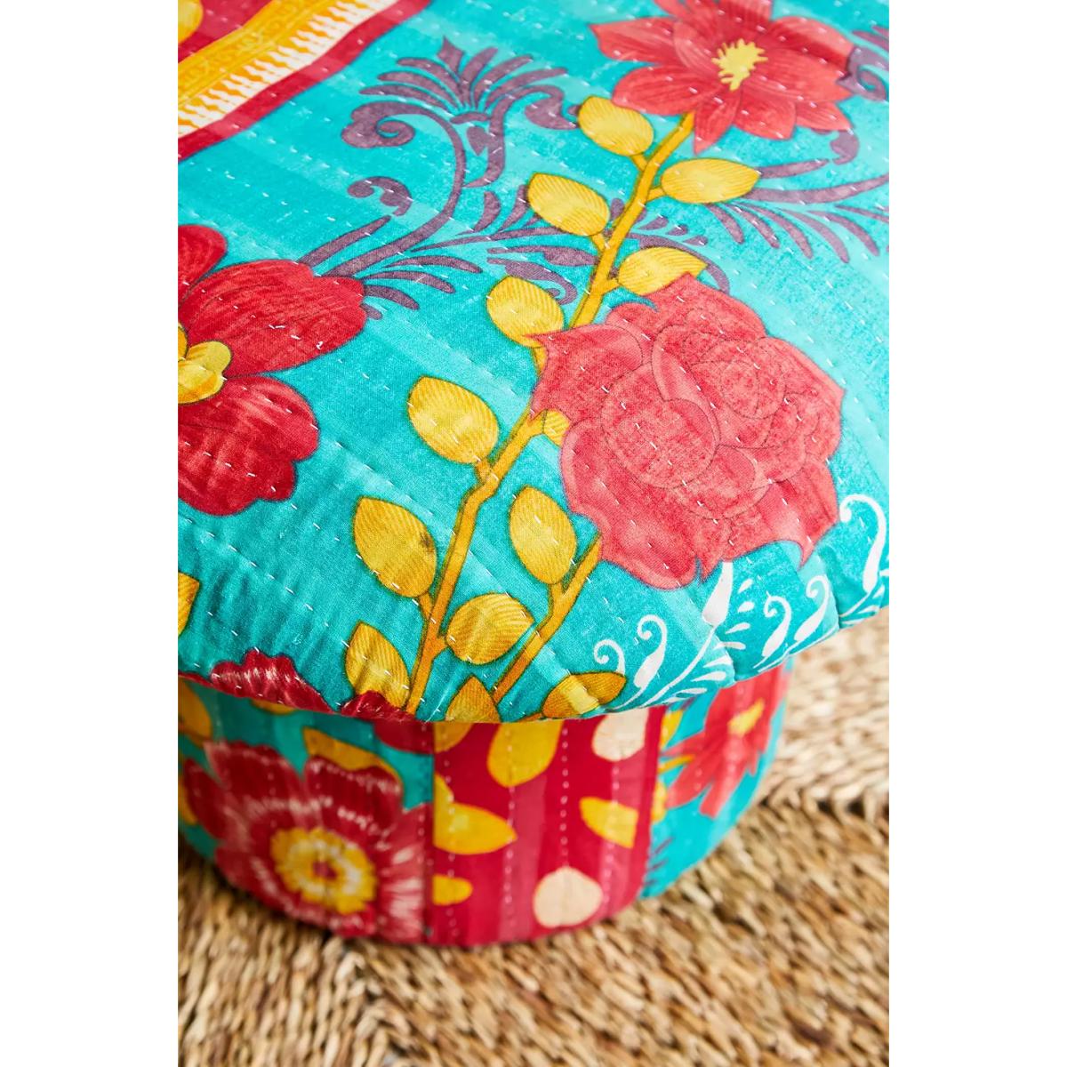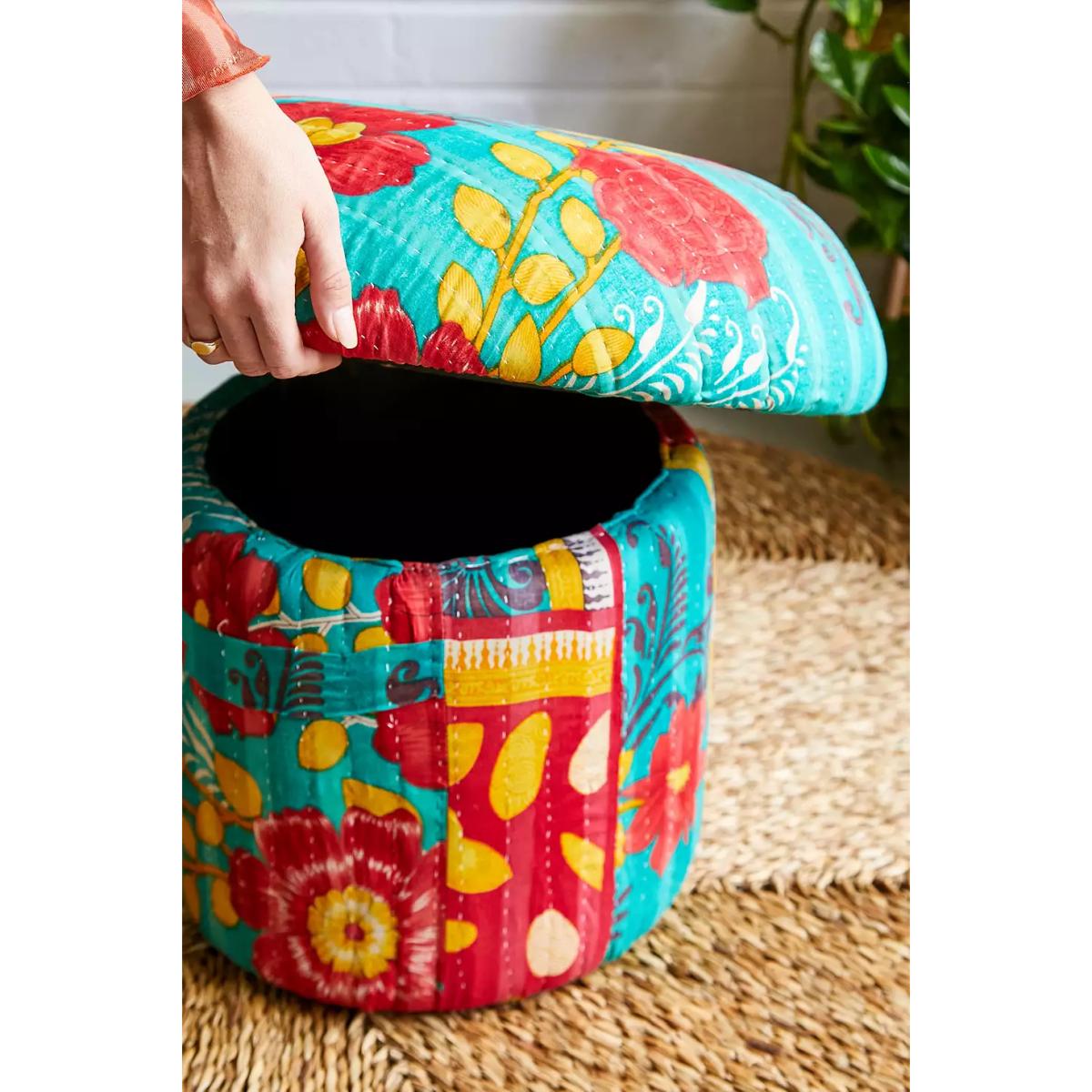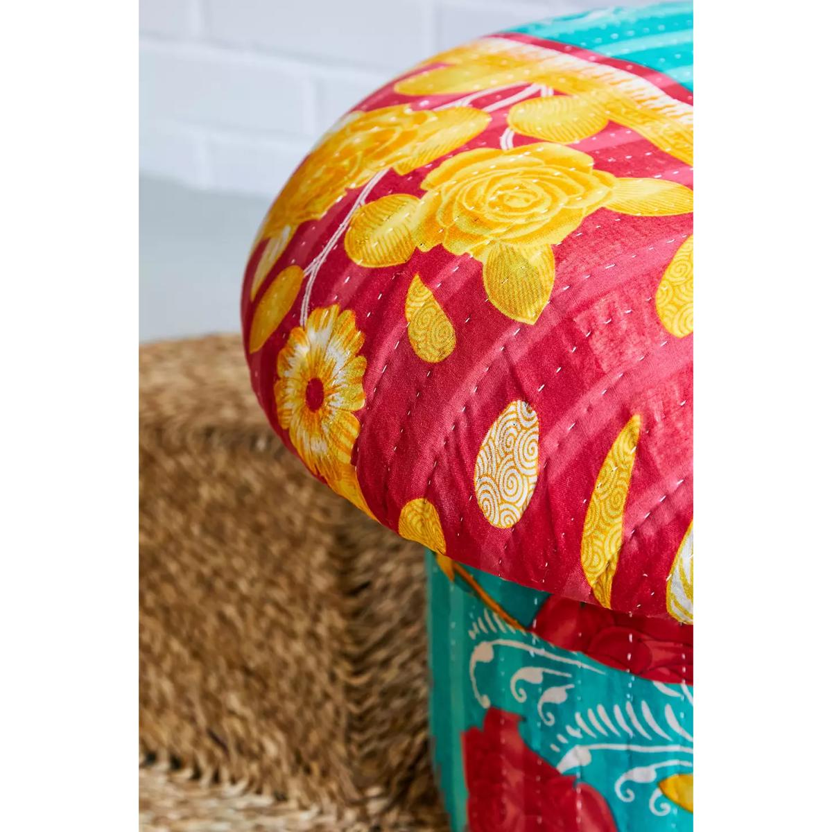 Add boho-style to your seating area with this mushroom stool. Upholstered in multi-print and multi-colour Kantha fabrication Ft. a hollow cylinder base perfect for storage use and a curved mushroom top. *Online return only. This item cannot be returned instore. Please note furniture items currently cannot be shipped to Northern Ireland or The Republic of Ireland. Delivery of large furniture items may take 1-2 weeks and are therefore not eligible for Next Day Delivery.* **Content + Care** \- Mango wood, MDF, Textile- Spot clean- Crafted from one-of-a-kind Kantha fabrications- Each one will differ slightly from the one pictured here **Size** \- Product Dimensions: H: 46.99cm x W: 46.99cm x L: 38.73cm- Package Dimensions: H: 46.99cm x W: 46.99cm x L: 38.75cm