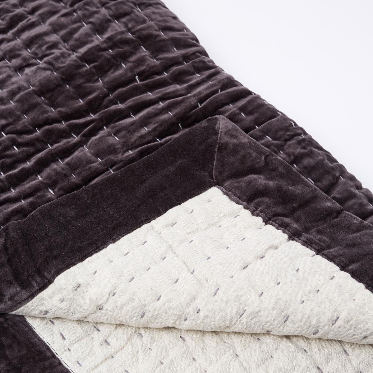 Designed exclusively by The Conran Shop, the fog-hued Kantha Velvet Quilted Throw will make a sophisticated and dynamic statement piece amongst your soft furnishings. Handcrafted using traditional Kantha techniques by women in the east of India, the 100% cotton velvet front is patched with intricately patterned fabric for a contemporary finish. Finished with a natural cotton-linen blend backing and painstakingly handstitched for an artisan finish, the textile is quilted by stitching multiple layers of fabric together for a truly individual aesthetic. The Kantha Velvet Quilted Throw is adaptable to a vast array of décor styles, owing to its multiple designs and subtle alternating hues. Care instructions: Professional dry clean only.