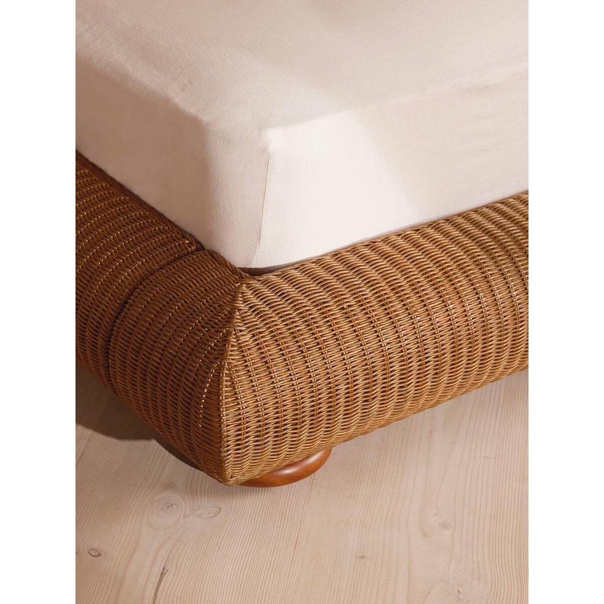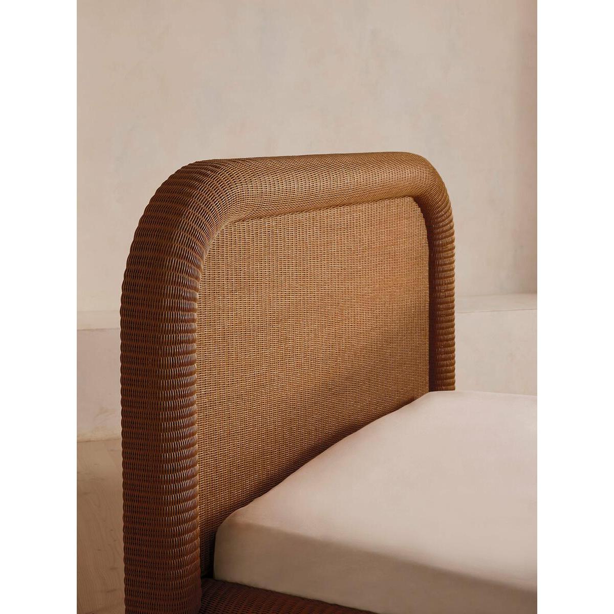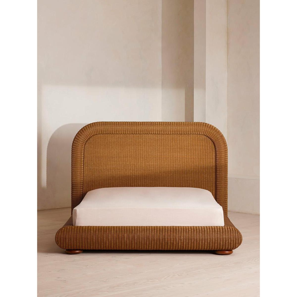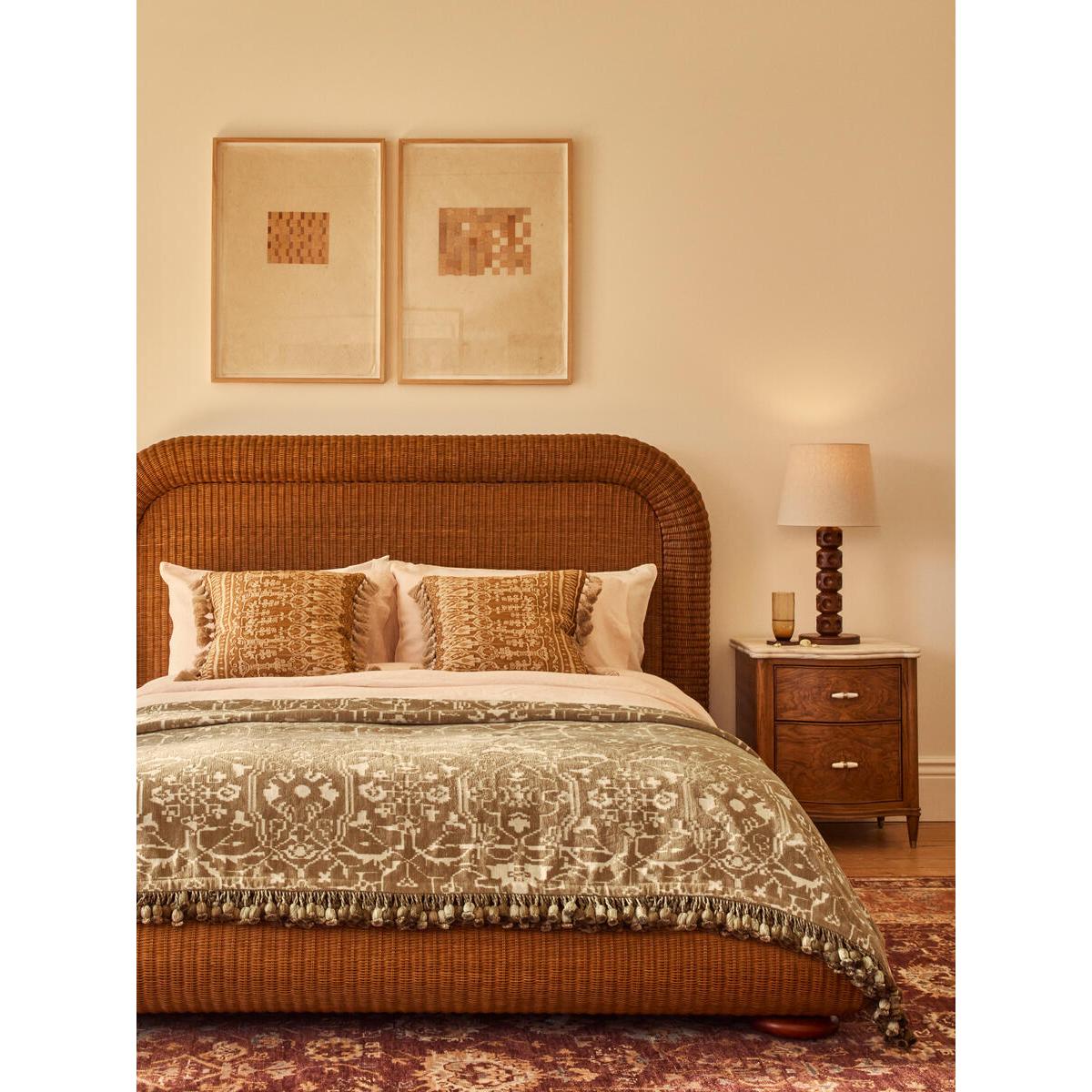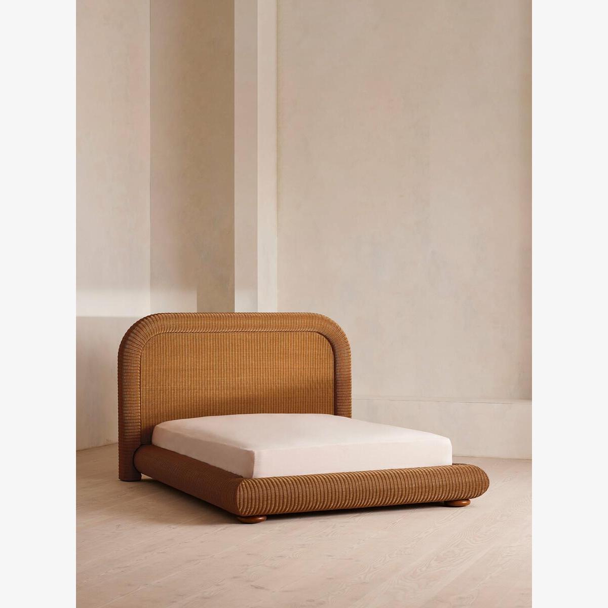 Our Kaplan bed combines modern design with traditional craftsmanship. Created with a low platform base, it's designed to take up less vertical space and lift the eye line, making the room feel bigger. Handwoven rattan details echo the natural artisan interiors of Soho Beach House Canouan. This bed also makes a feature of the back of the headboard in veneered mahogany wood, meaning it can float in the middle of a larger room if desired. King-size bed Low platform base Handwoven natural rattan Aged finish Solid mahogany wood slats Stained solid mahogany wood feet Mahogany veneer to back of headboard Available in King, Super King and Emperor Pair with our Soho House x Hypnos Exclusive Mattress Inspired by Soho Beach House Canouan