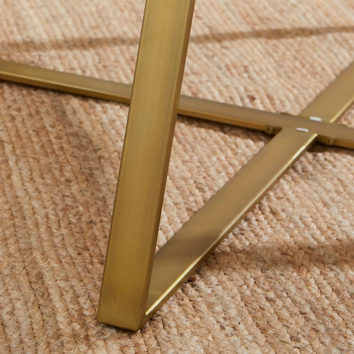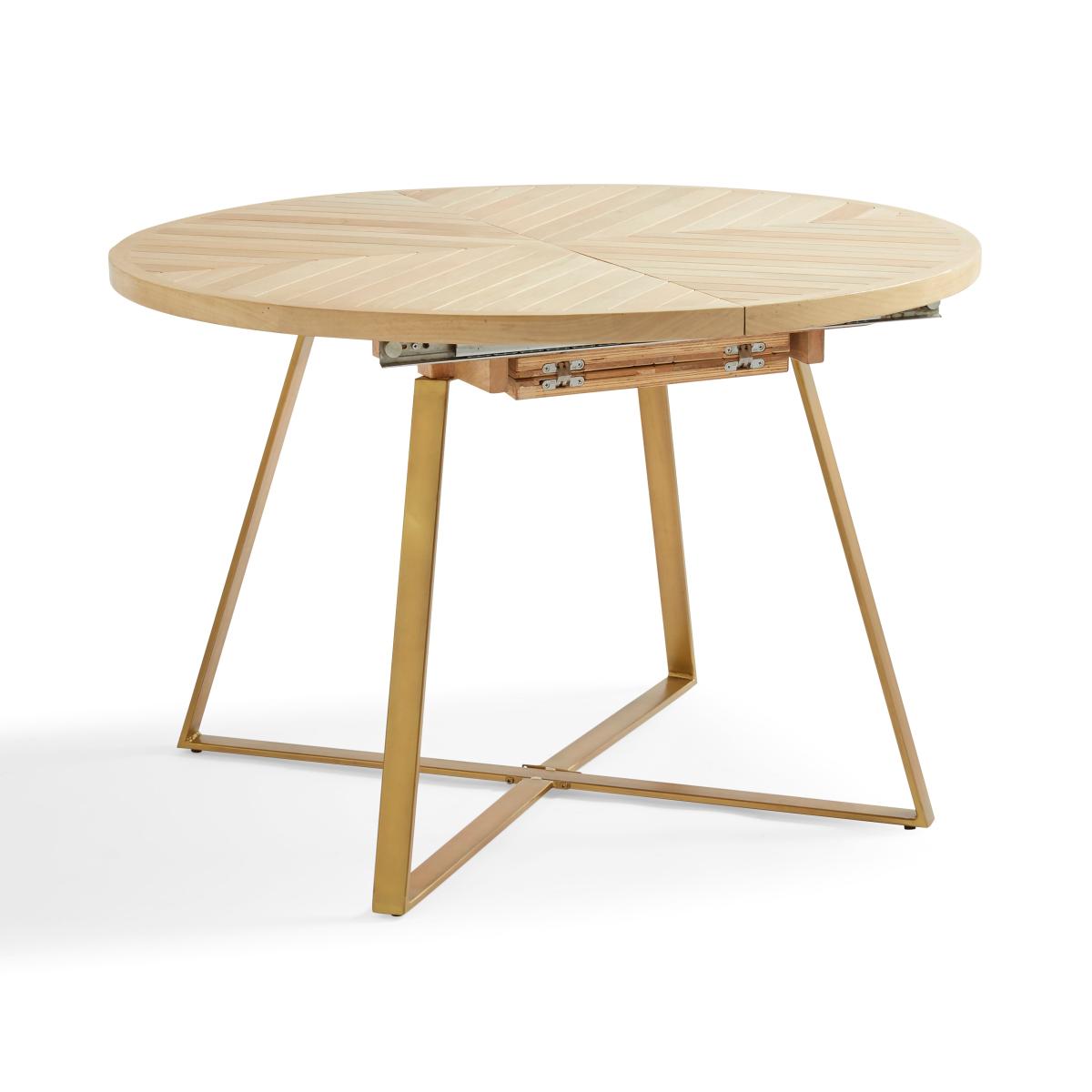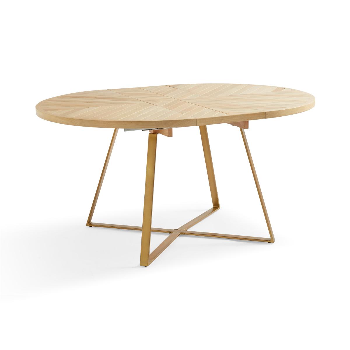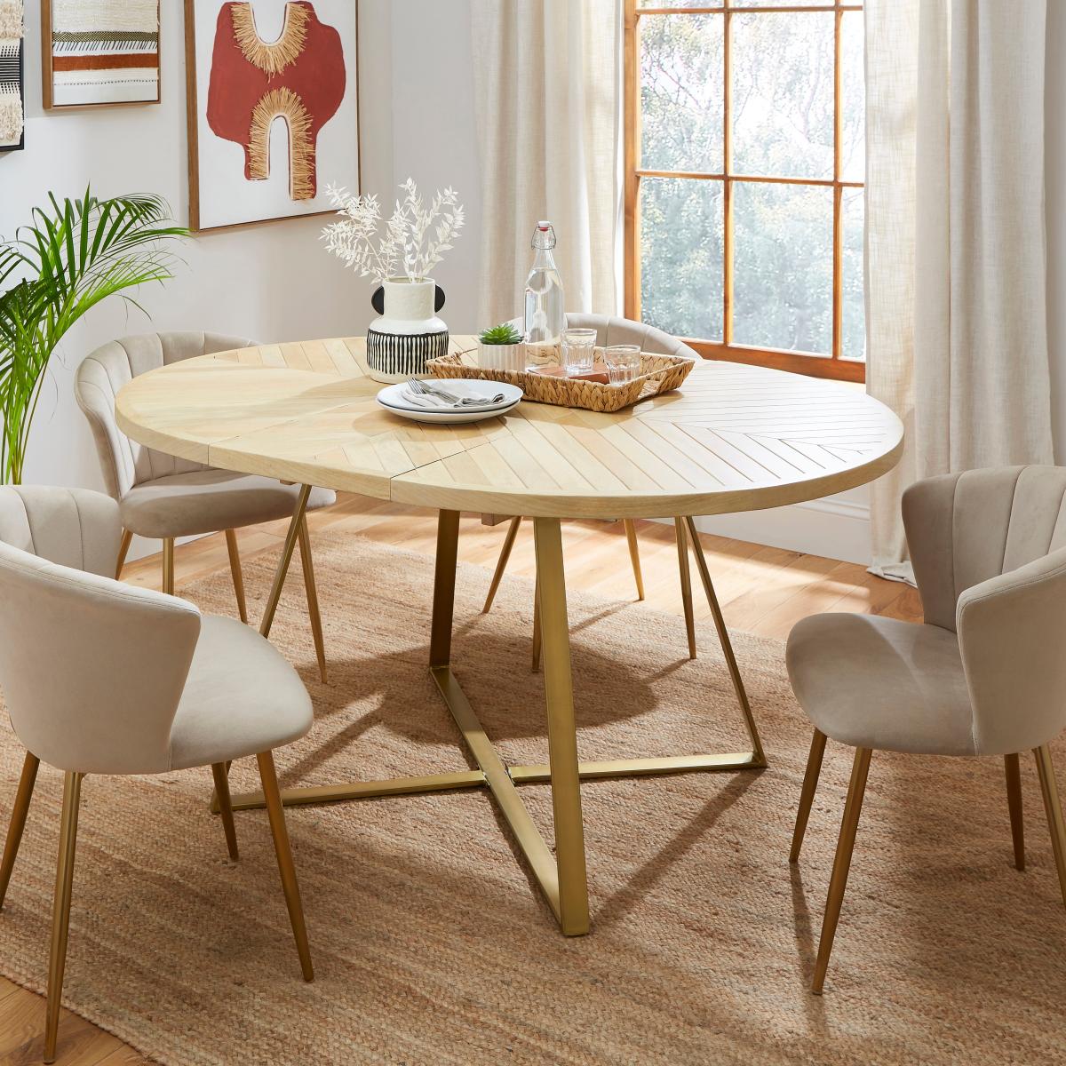 This table features a beautiful parquet top that not only adds a touch of timeless elegance but also extends from 120cm to 160cm to accommodate your varying dining needs. The exquisite gold-effect detailing enhances its charm, making it a stunning centrepiece for any dining room.