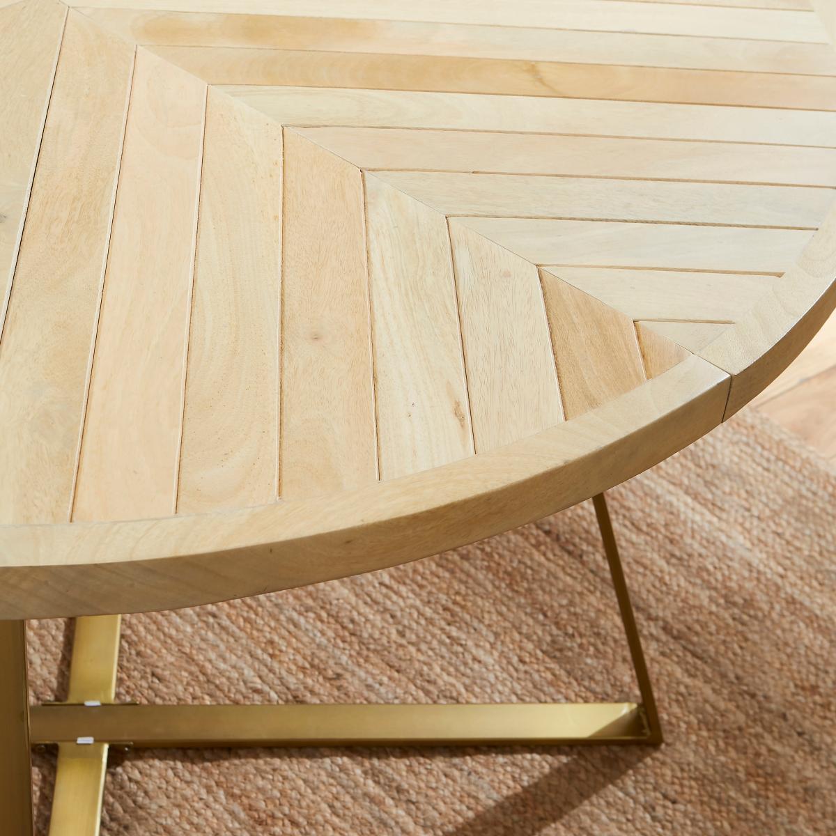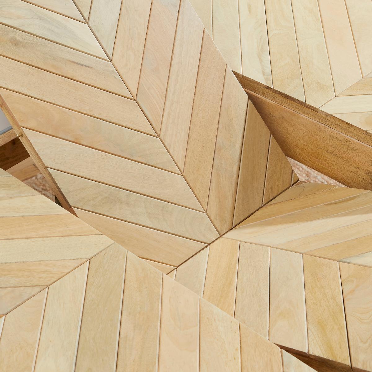 Kara 6 Seater Round Parquet Extendable Dining Table, Mango Wood Brown