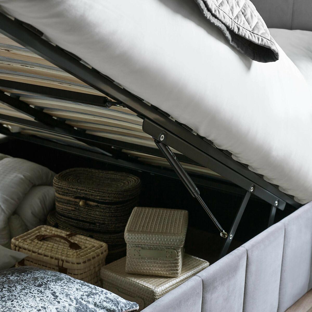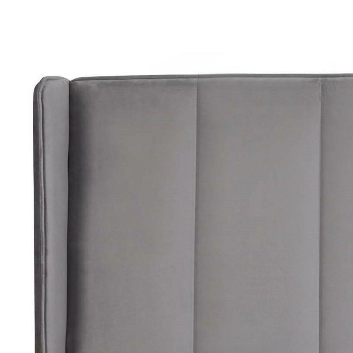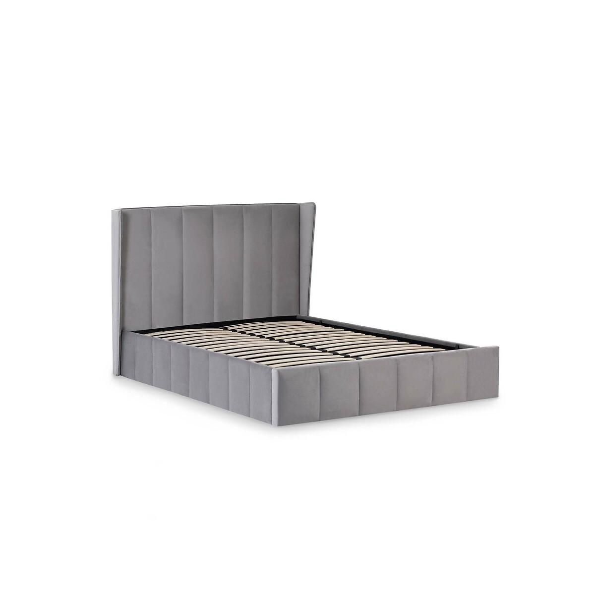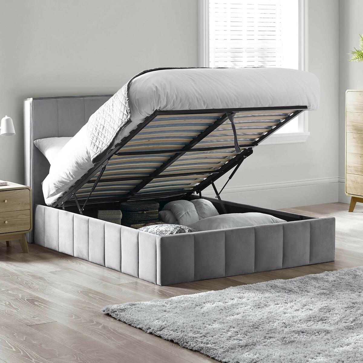 A timeless design with a modern twist, this winged ottoman bed is upholstered in soft grey velvet for a luxurious finish. The tall winged headboard creates a statement look while offering comfort and support when relaxing in bed. Designed with a practical ottoman mechanism, the frame lifts to reveal generous storage space, ideal for keeping bedding, clothing and everyday essentials neatly tucked away. Product details• Winged headboard• Solid slatted base• Velvet upholstered• Channel stitch detail• FSC Wood frame• Full assembly required• 12 month manufacturers warranty• Care Advice:Wipe clean with a soft cloth. Product Composition - 40% WOOD,20% FOAM,25% VELVET FABRIC,15% METALProduct Dimensions Double 158 cm x 205 cm x 131 cm , Weight - 63.85 KGKing 168 cm x 215 cm x 131 cm , Weight - 68.95 KGPackaged Dimensions. Double: Parcel 1 Packaged Dimensions - 169 cm x 150 cm x 10 cm, Weight 20.15 KGParcel 2 Packaged Dimensions - 195 cm x 36 cm x 22 cm, Weight 49 KGKing: Parcel 1 Packaged Dimensions - 169 cm x 163 cm x 10 cm, Weight 23.2 KGParcel 2 Packaged Dimensions - 206 cm x 36 cm x 22 cm, Weight 51.75 KGThis product will be dispatched by one of our trusted suppliers. You’ll be contacted by their selected courier about your delivery. Please note: this product cannot be delivered to all Offshore Islands, Northern Ireland or Republic of Ireland.