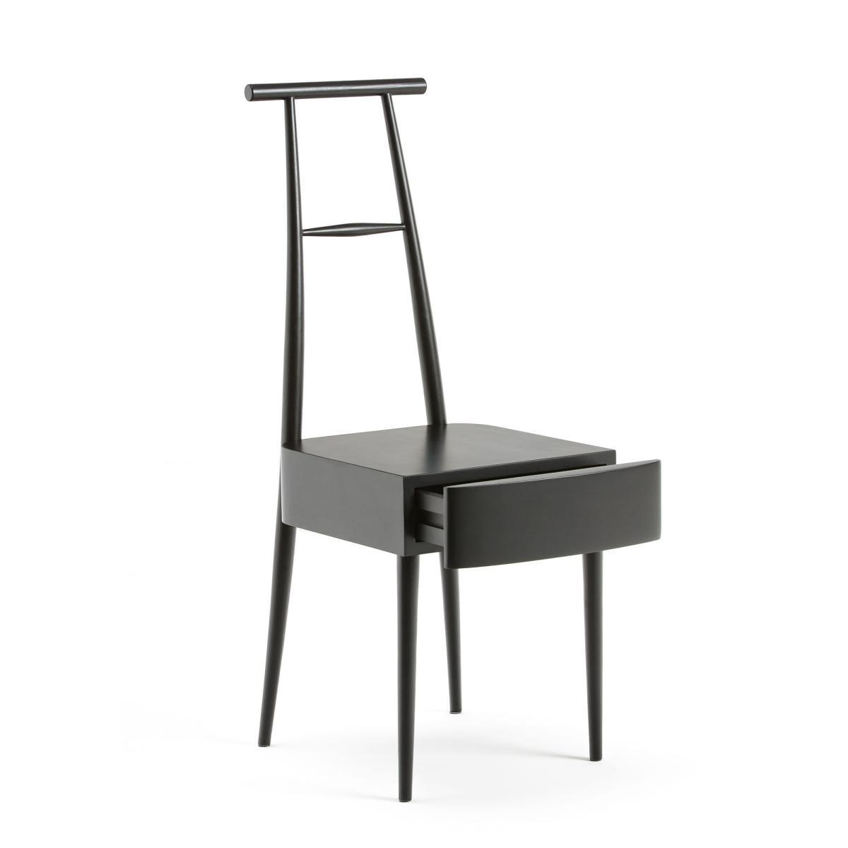 The Karabé bedside table. Original and dramatic with its chair shape, it can serve as a bedside table but also an unusual side table.
