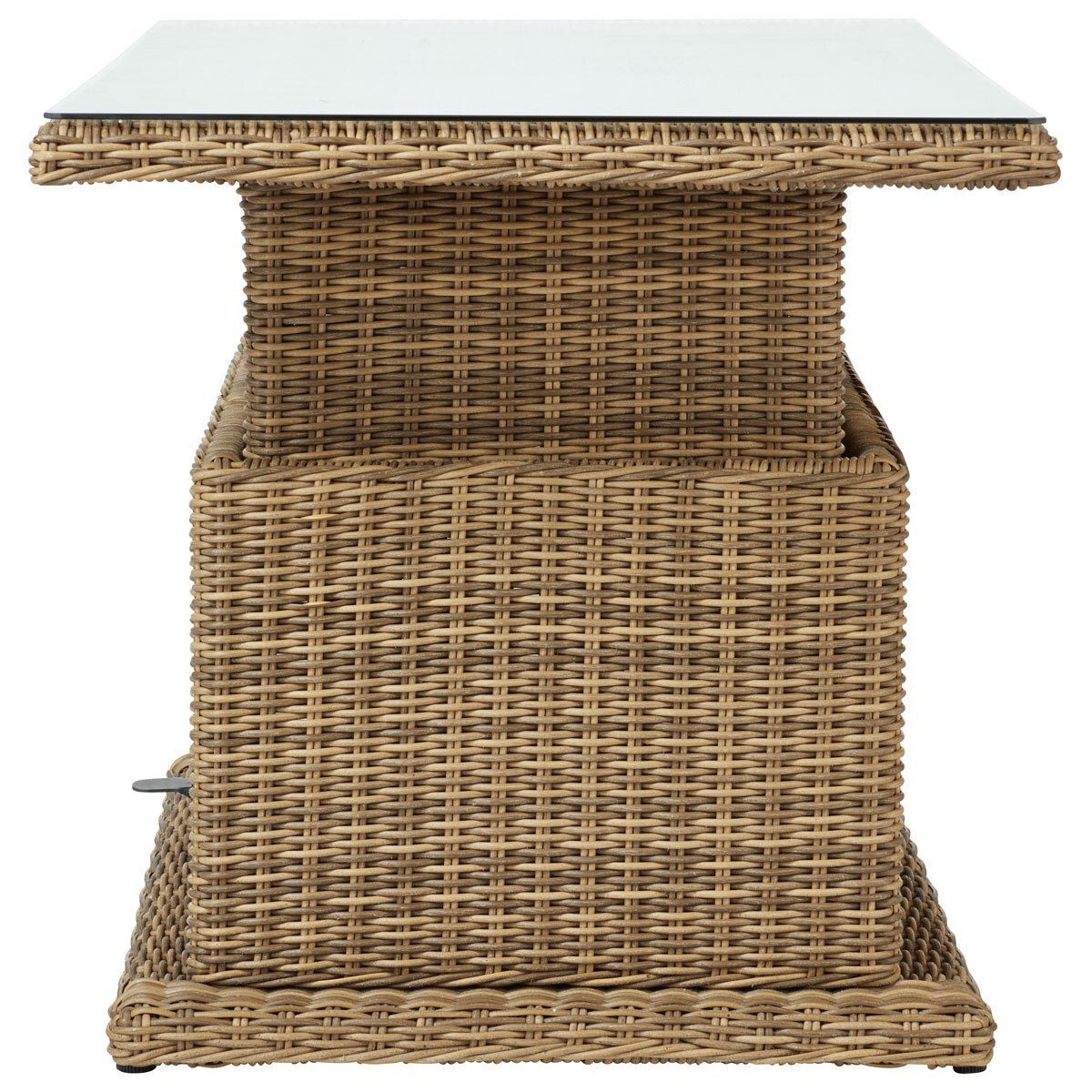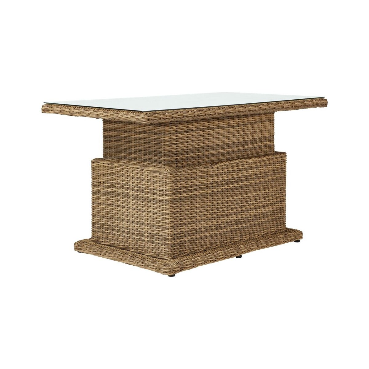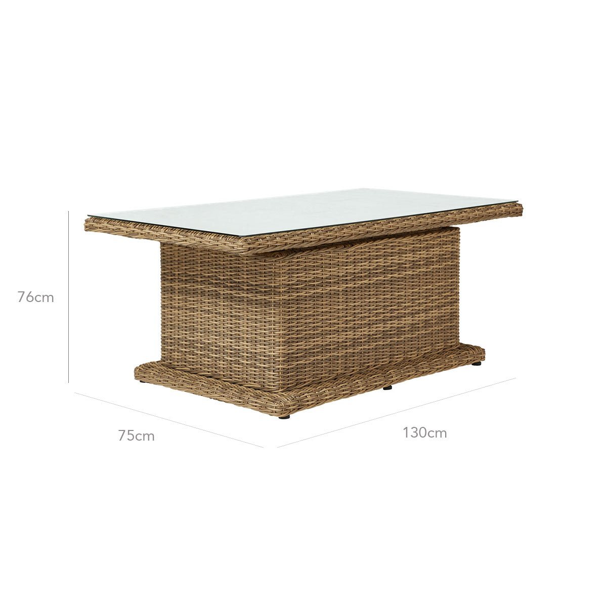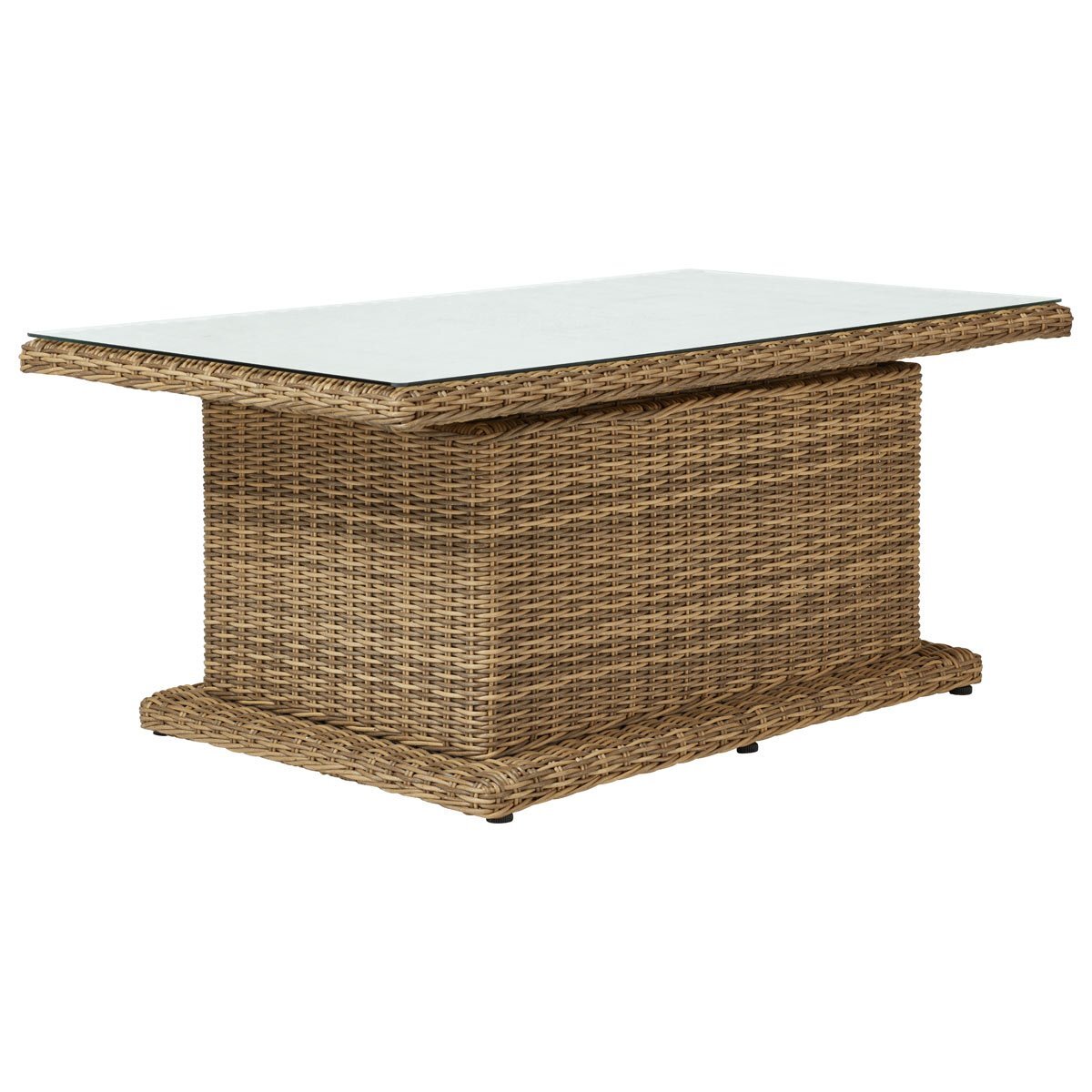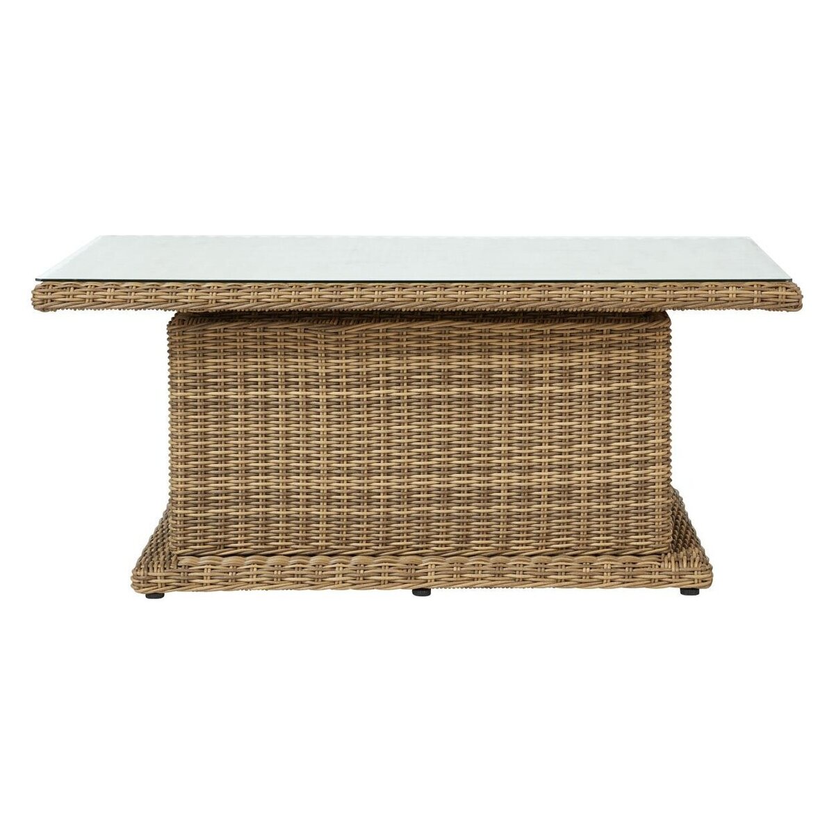 Our ingenious Karama Coffee Table solves the dilemma of whether to get a coffee table or a dining table for your outdoor space. At first glance, it appears to be a glass-topped "rattan" coffee table but, using the clever mechanism in the pedestal base, it can be raised up and transformed into a dining table that seats six. It really does provide the best of both worlds.