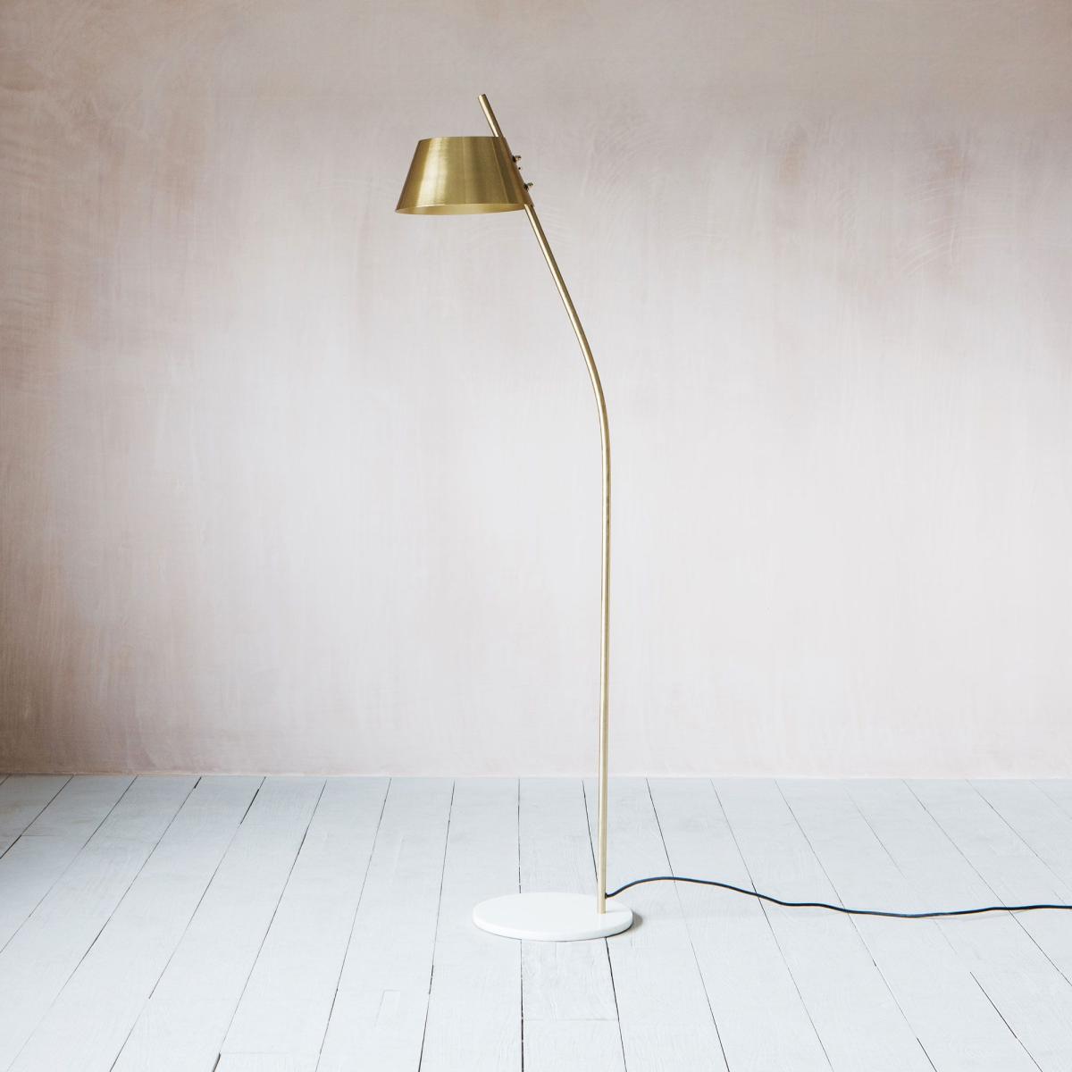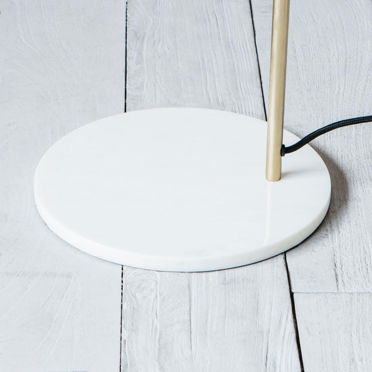 A subtle silhouette of sleek iron with a brass finish and a luxurious marble base, sink into a velvet armchair and a good book with this floor lamp by your side.