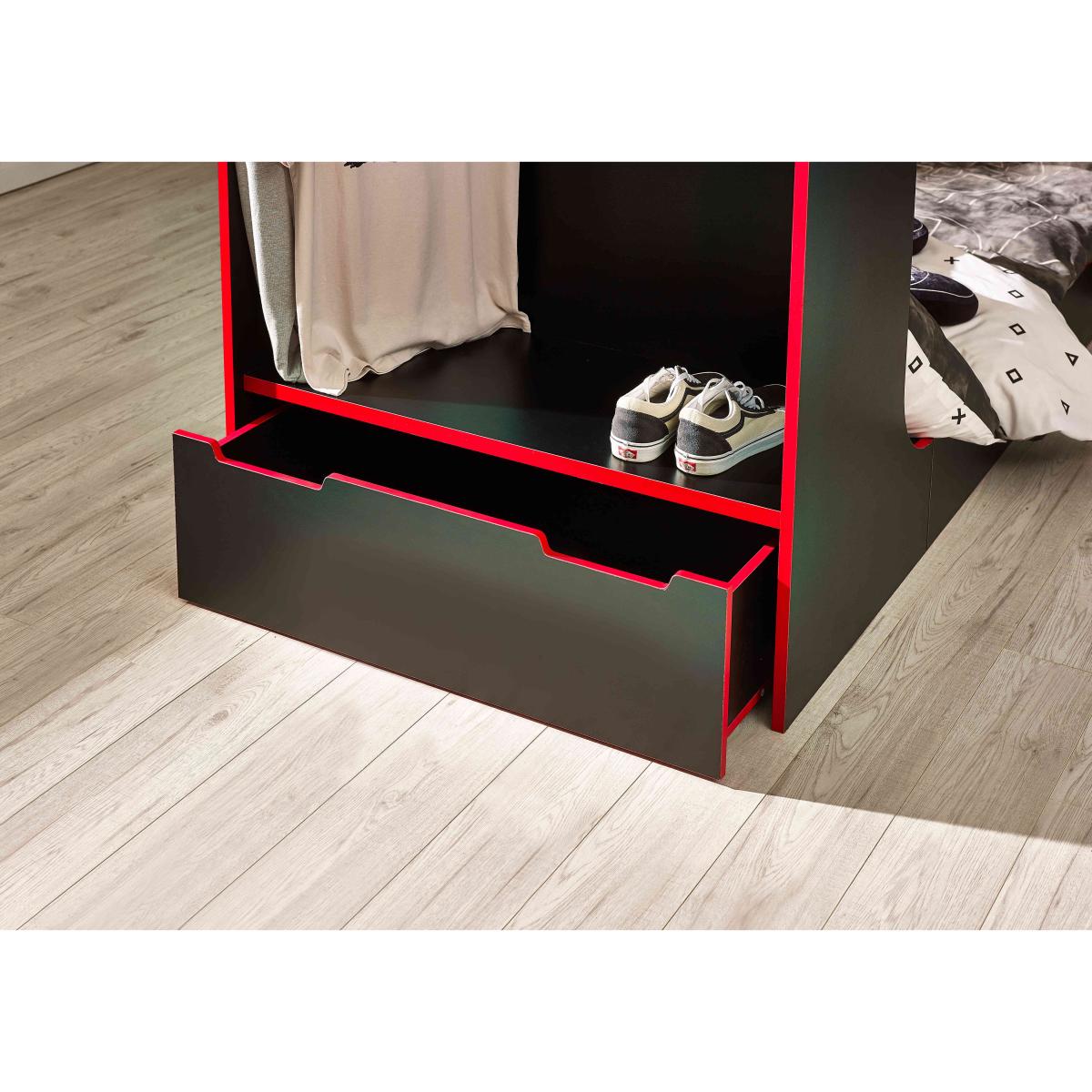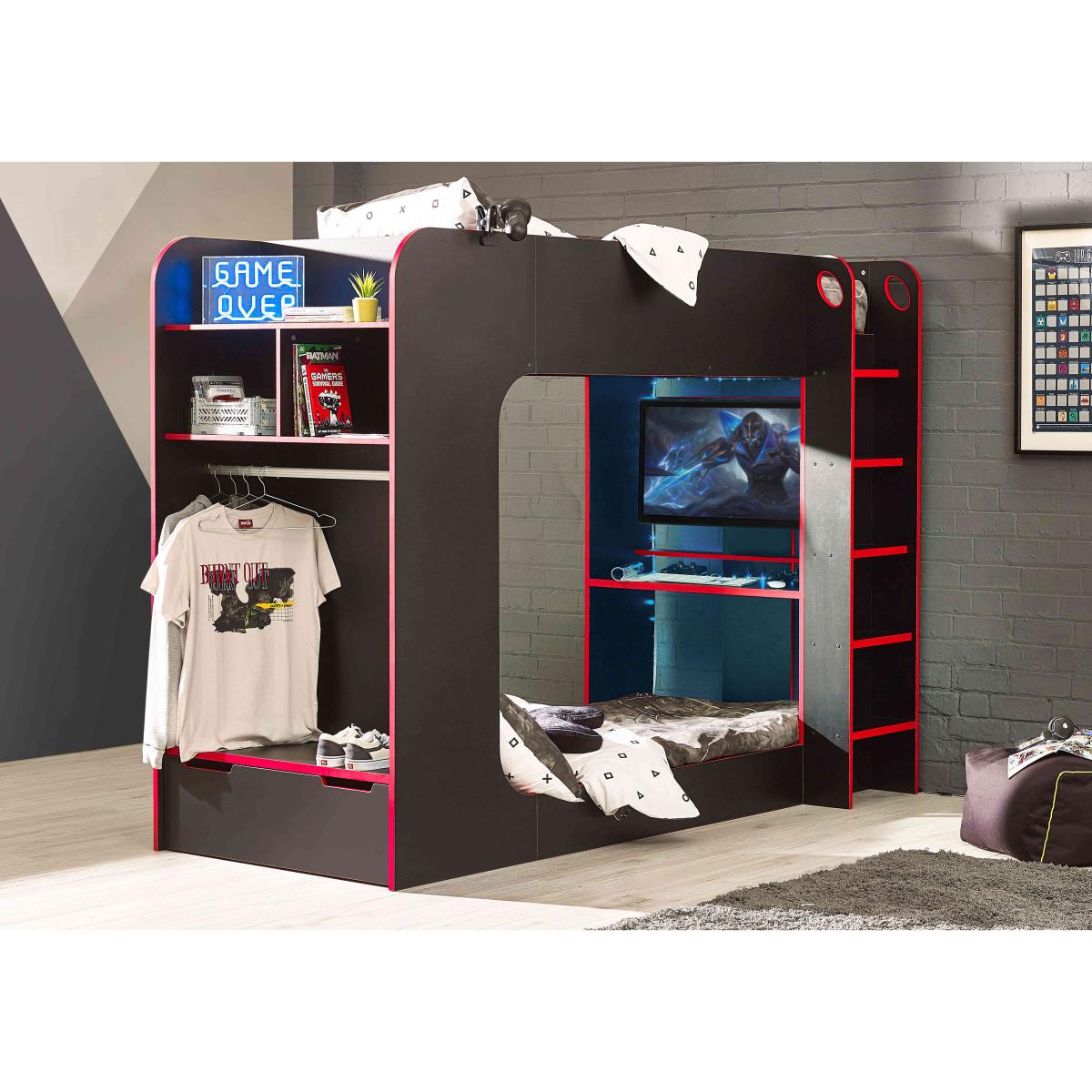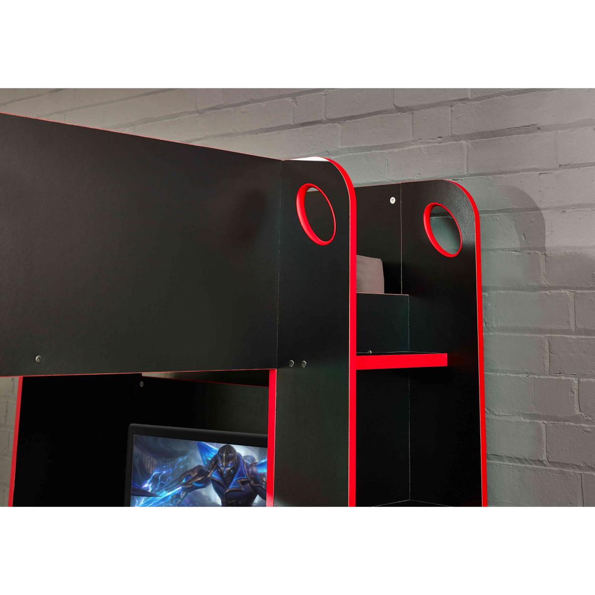 The ultra-cool Kari Gaming Bunk Bed has everything for the gamers of the house, with a large underbed space and desk, plus extra handy storage built in. Why you'll love it The perfect setup for teenage gamers, this gaming bunk bed has it all. Crafted from sturdy materials and built to last. Sleep, stream, and play, all in one cosy spot. Available in 2 stylish finishes, white and black/red. We also offer a range of kids mattresses that’ll fit perfectly. This bunk bed is part of our kids bedroom range from Julian Bowen. What you need to know This bed is not supplied with a mattress included. This product is suitable for children aged 6 and over. Please note this item is self-assembly and will take approximately 180 minutes to assemble. Maximum safe mattress depth is 17 cm. Clearance of 10 cm is required either end for assembly.