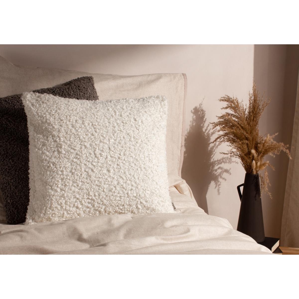 This large cushion is just the softest and the cosiest around thanks to its woolly boucle fabric cover and feather filling. In a stylish ecru colour. Why you'll love it Soft and cosy large feather-filled square cushion. Chunky-textured boucle fabric is very on trend. Contemporary ecru shade suits stylishly minimal interiors. 100% feather filling. Reversible. This large cushion is part of the Furniture Village home accessories collection. What you need to know Polyester fleece. Feather filling. For indoor use only. To maintain cushion plumpness, regularly turn, rotate and plump. Some fabrics can show wear on areas of more use or in direct sunlight. Clean regularly using a soft brush or vacuum with the curtain attachment. Deal with any spills promptly. Professional cleaning advised for oil- and grease-based stains. Please read our upholstery care guide for more advice. Dimensions Height: 55 cm (22 in). Width: 55 cm (22 in). Item code: K-RILCUSCHOC-001