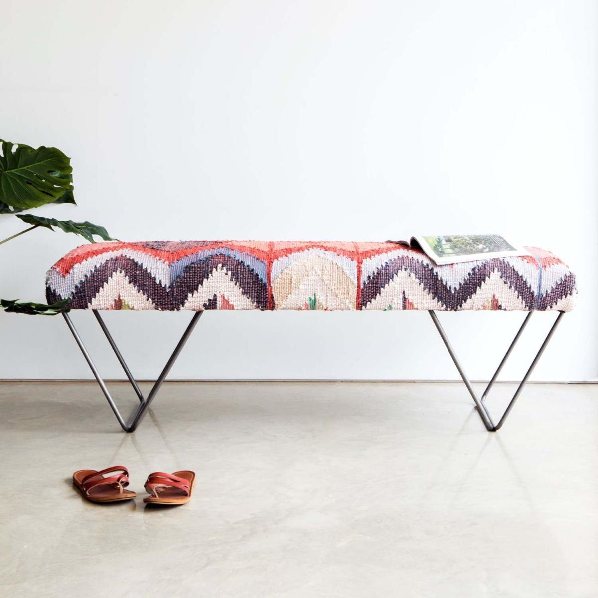 I really like this bench because of its eco-conscious design and modern, geometric fabric that can add a touch of character to a variety of interiors. It works particularly well in contemporary or boho spaces, serving as a versatile piece in bedrooms, hallways, or even living rooms. For styling tips, I’d suggest pairing it with neutral-toned furnishings to let the pattern stand out, or layering with textured cushions or throws for a cosy feel. Its recycled cotton upholstery also makes it a practical choice for high-traffic areas, combining sustainable materials with functional style.