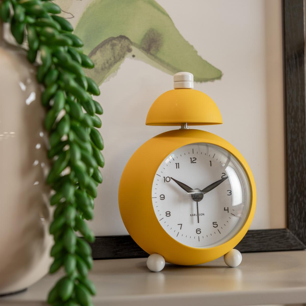 I love the Karlsson Chaplin alarm clock for its playful yet sleek design, which makes it a versatile piece for a variety of interiors. Its bold yellow colour can add a cheerful pop to minimalist, Scandinavian, or modern spaces, while its rounded form and simple detailing blend well into both contemporary and retro-styled environments. Practical styling tips include placing it on a bedside table or a kitchen shelf to serve as both a functional and decorative element. To keep the look clean and balanced, pair it with neutral tones or natural textures, allowing the clock to stand out without overwhelming the space. Its compact size and eye-catching design make it an ideal statement piece that combines practicality with aesthetic appeal.