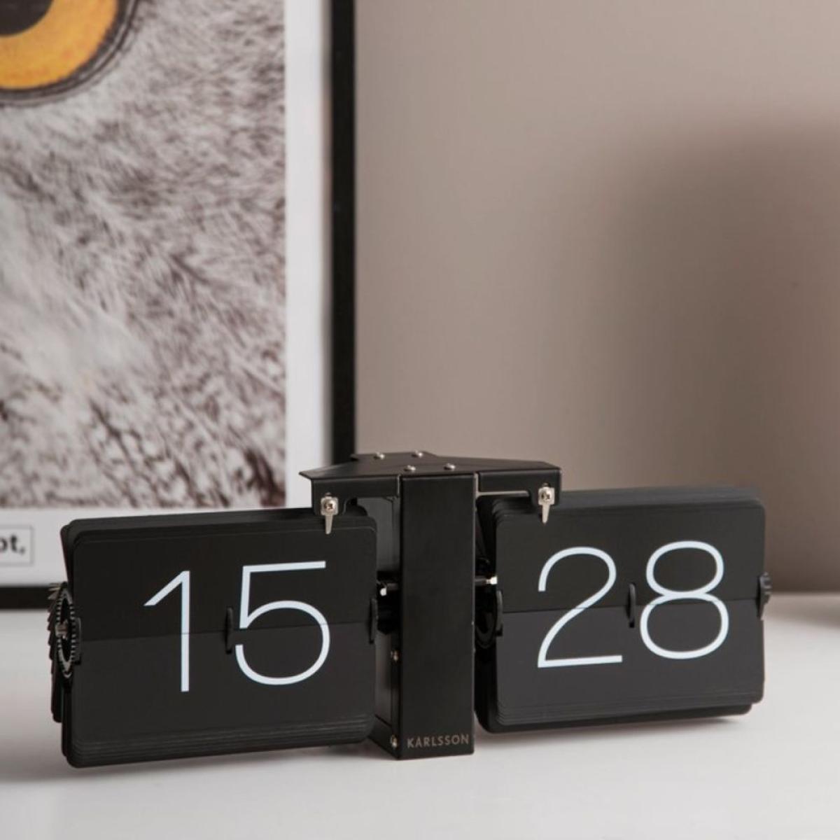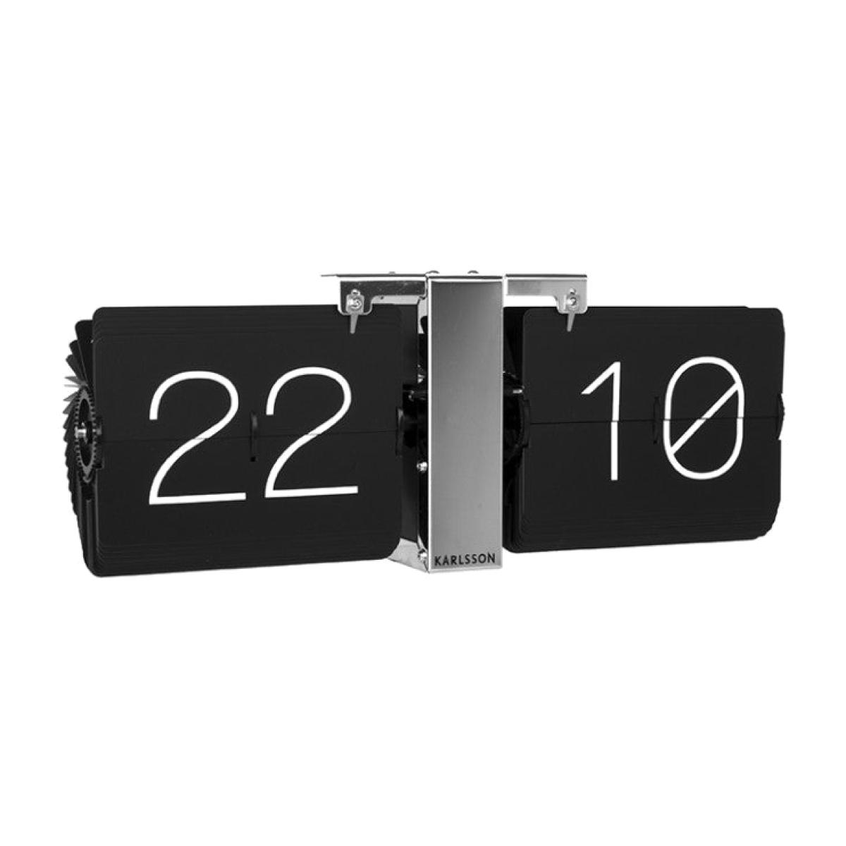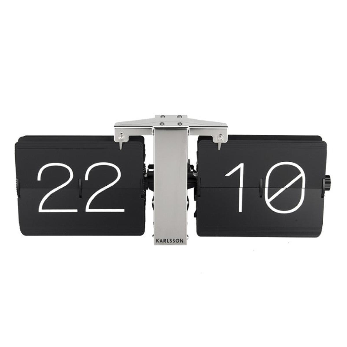 The clock in black with a base in chrome has a retro design that is very modern at the same time. The clock, designed by BOX32 Design, consists of cards that rotate and show the time in this way, the clock has ‘no case’. Hence the name Flip No Case. From workspace to bedroom and from the kitchen to the corridor; clock Flip No Case by Karlsson can find a place in any room since he can be used as a table clock and also as a wall clock! Dimensions: H:12 x W: 40 x D:19 cm Materials: Steel Assembly required: No Care Instructions: wipe clean with a soft lint free cloth