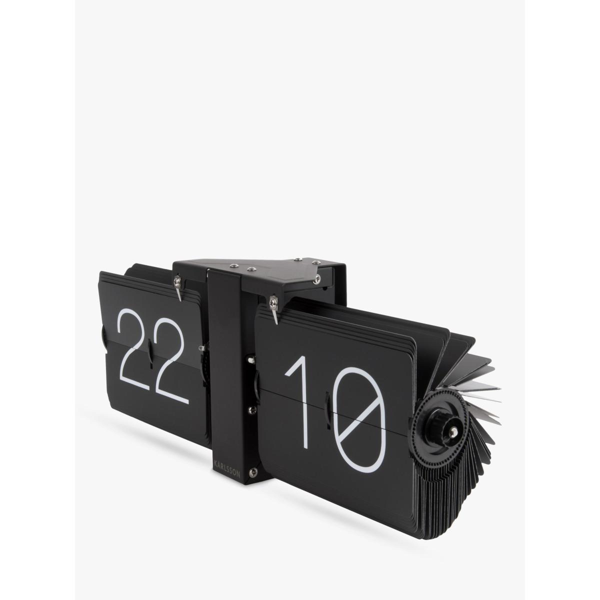 This Flip No Case version of Karlsson's best-selling clock has a modern profile. Suiting any room, the clock gets its name from rotating flip-over cards that update the time. This design has no case and simple matt black cards with easy-to-read white numerals. Find it a home on a table, shelf, kitchen countertop or fix it to the wall.