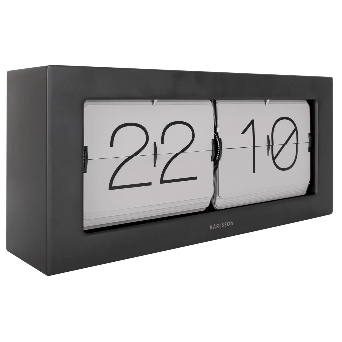 * Larger version of popular classic* Minimalistic design* Unique flip mechanism* Retro style* Choice of finishes* Takes 2 x D batteries (not included)A classic piece from Karlsson in a larger size, the Karlsson XL Boxed Flip Mantel Clock blends modern, minimalistic design with retro charm. It features an open front to showcase the innovative flip card mechanism, where each minute and hour flips seamlessly to display the time. With a sleek casing in a choice of colours and contrasting flip cards, it can be placed on a table, shelf or mantel, or hung on the wall. It’s a striking addition to your living or working space and requires 2 x D batteries (not included). It comes with a 2-year guarantee for peace of mind. A must-have for those who appreciate design and function in one.