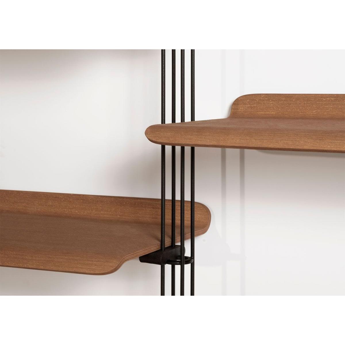 Designed by Philippe Starck for Kartell, the Adam Wood Shelving system forms part of a collection of furniture produced using 'Smart Wood'. The Adam Wood bookshelf / shelving system uses an intelligent combination of steel struts onto which 'smart wood' shelves are mounted and can be positioned to a desired height.