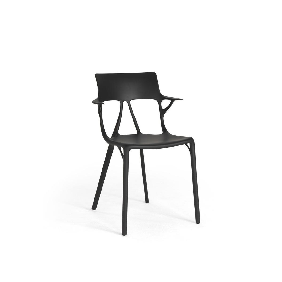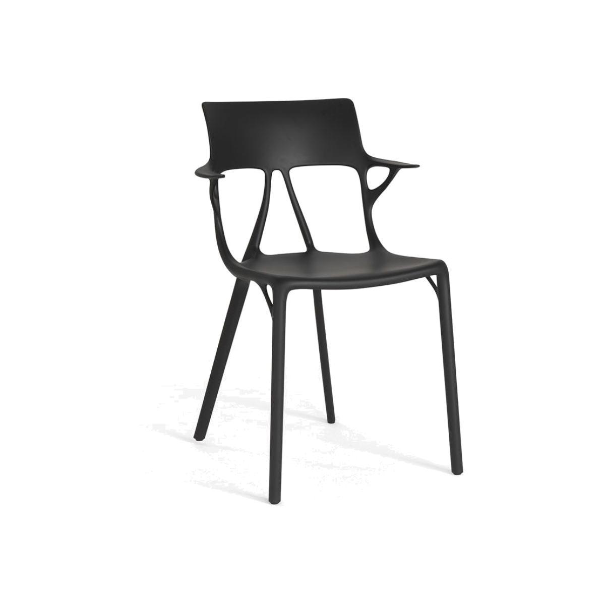 Philippe Starck designed the A.I. Chair for Kartell using design software developed by Autodesk. Starck used this artificial intelligence software to create a robust and stable chair using minimal materials. By using less materials the design minimises waste and helps limit its impact on the environment. The injection-moulded chair is crafted using recycled thermoplastic taken from production offcuts. The chair is suited to both indoor and outdoor use and is stackable up to three chair.