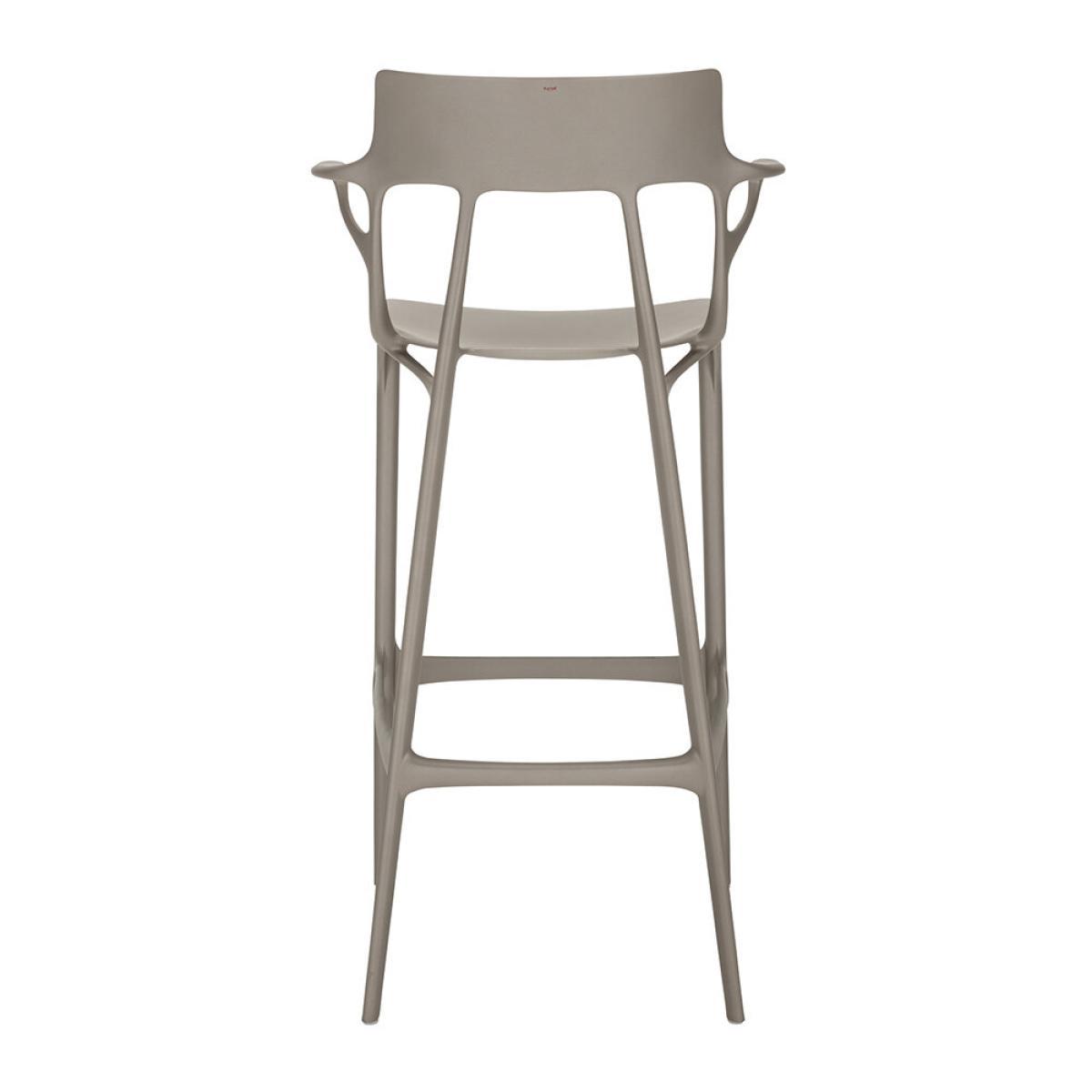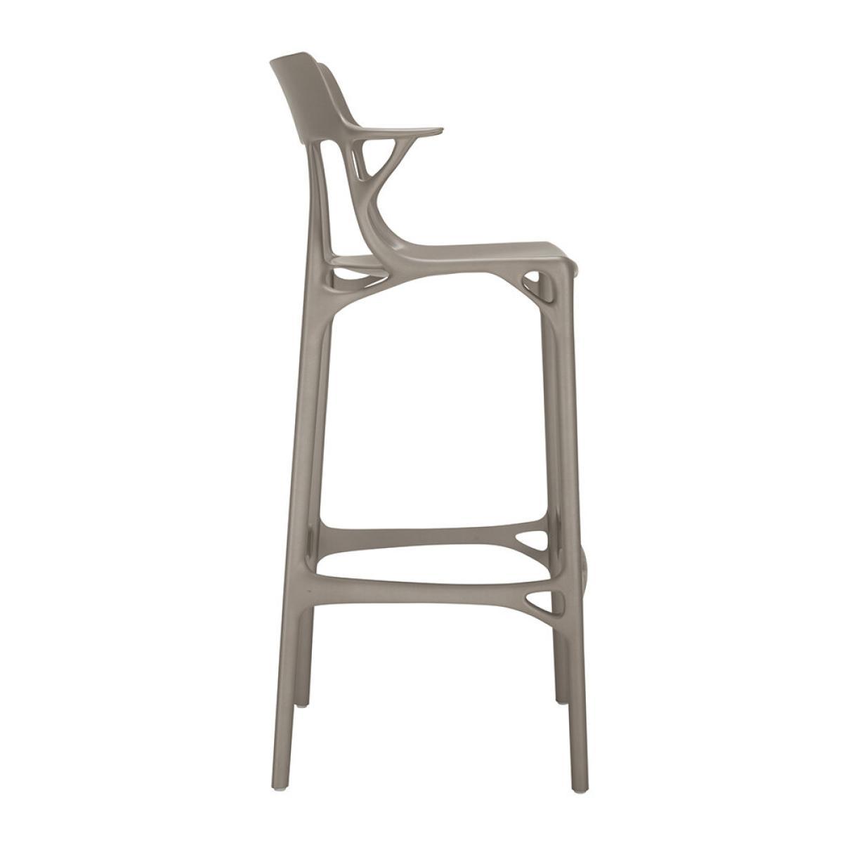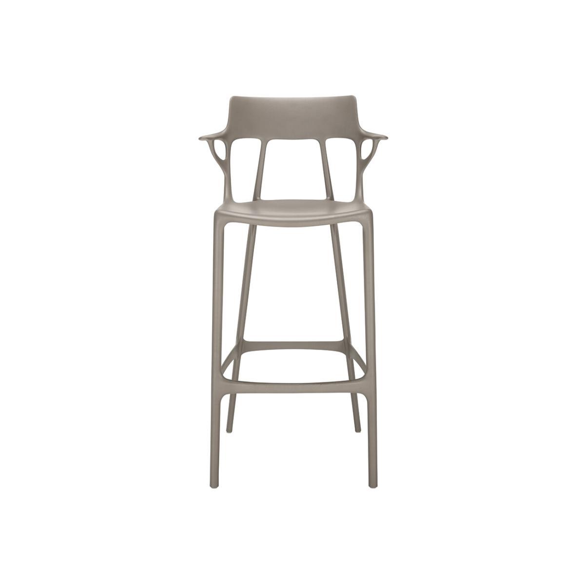 Elevate your kitchen with this AI Stool from Kartell. Designed by Philippe Starck, this stylish stool was originally conceived by artificial intelligence. Expertly made in Italy from recycled thermoplastic, it is available in black, white, and grey in a smooth matt finish. Key features: * Bar stool * Material: 100% recycled thermoplastic * Dimensions: H108xW55xD49cm * Seat height: 75cm * Matt grey colour * Conceived by artificial intelligence * Designed by Philippe Starck
