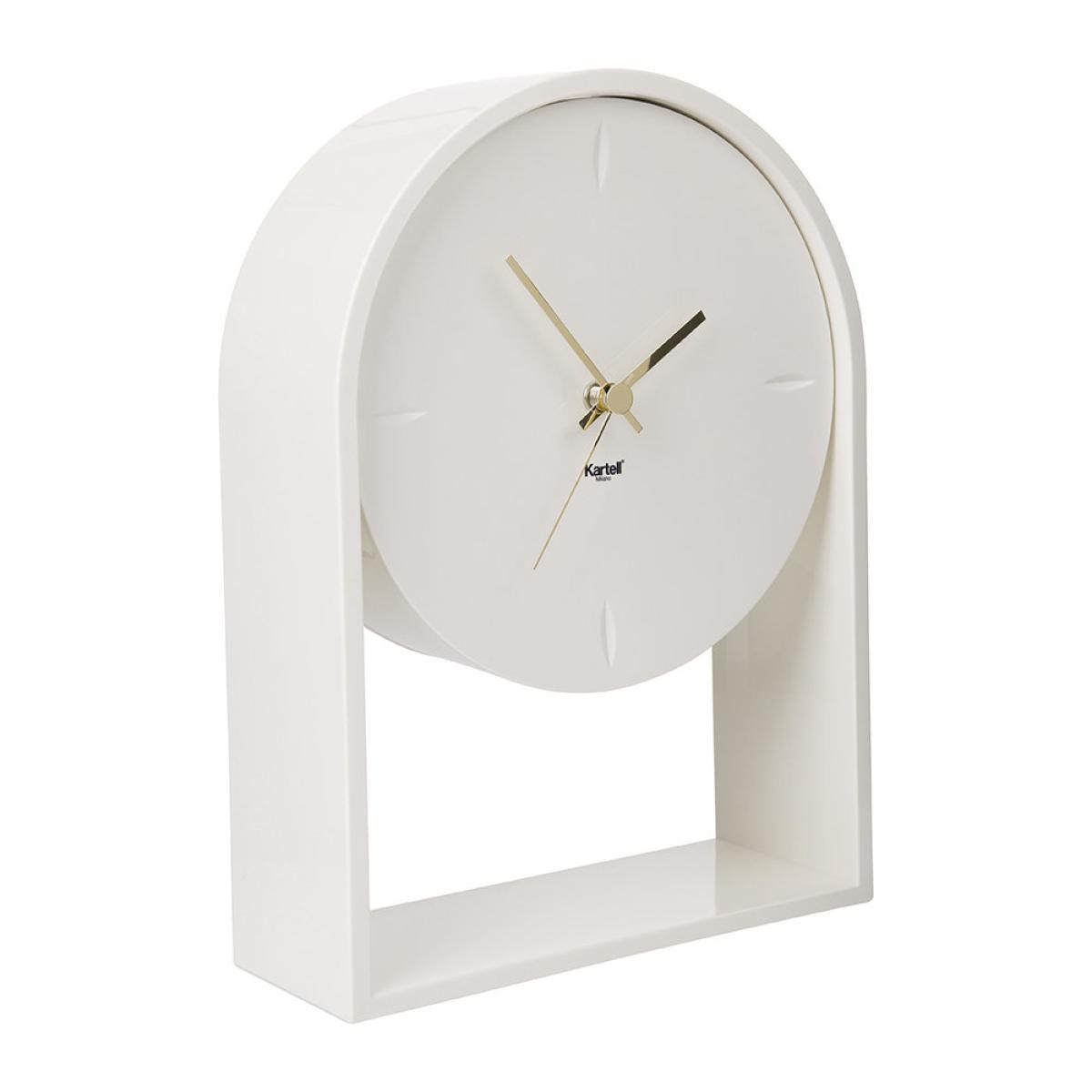 Bring simple yet effective design to any interior with this Air Du Temps clock from Kartell. Made from thermoplastic technopolymer, this sleek clock features a contemporary clock face finished with a traditional inspired frame. This freestanding desk or bedside clock also has a silent tick so it won't disturb your work or sleep.
