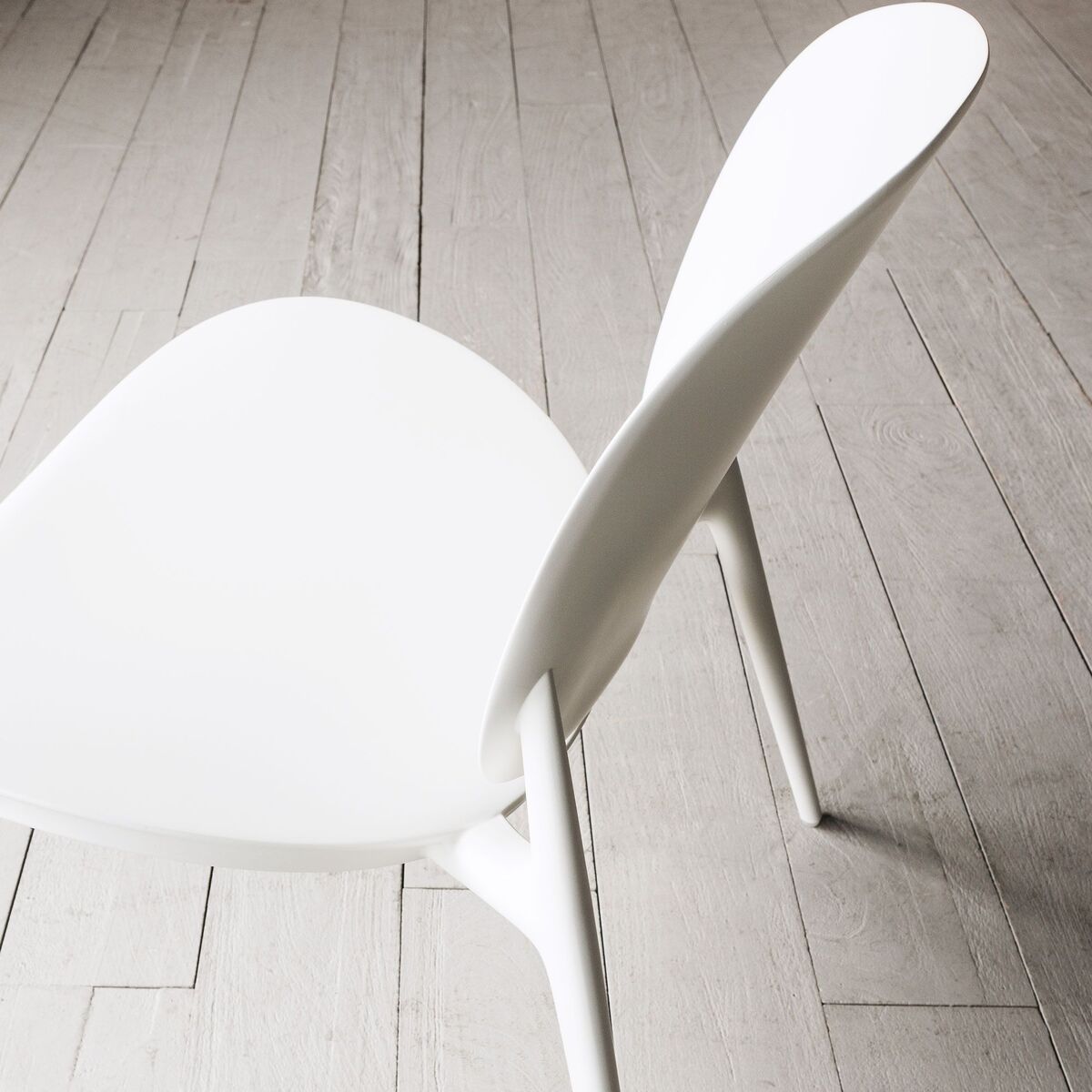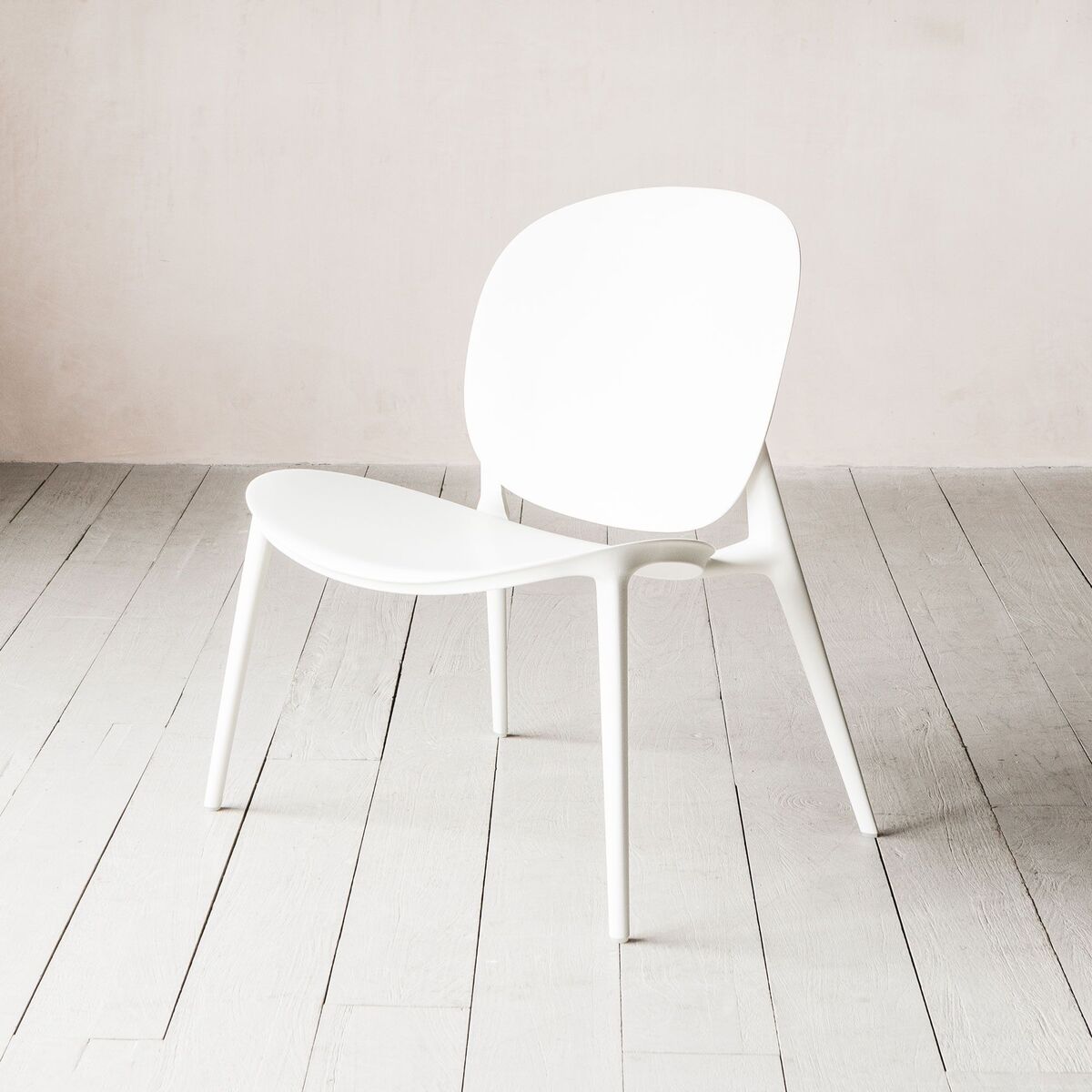 With influences of traditional African carving and the multi layering of plywood within vintage American furniture design, the Be Bop Chair is updated for the contemporary home in polypropylene and a cool white finish. Suitable for indoor and outdoor living. H75 x W69 x D62cm. Seat height: 34cm. Seat width: 62cm. Made of polypropylene with a soft-touch finish. Suitable for indoor and outdoor use.