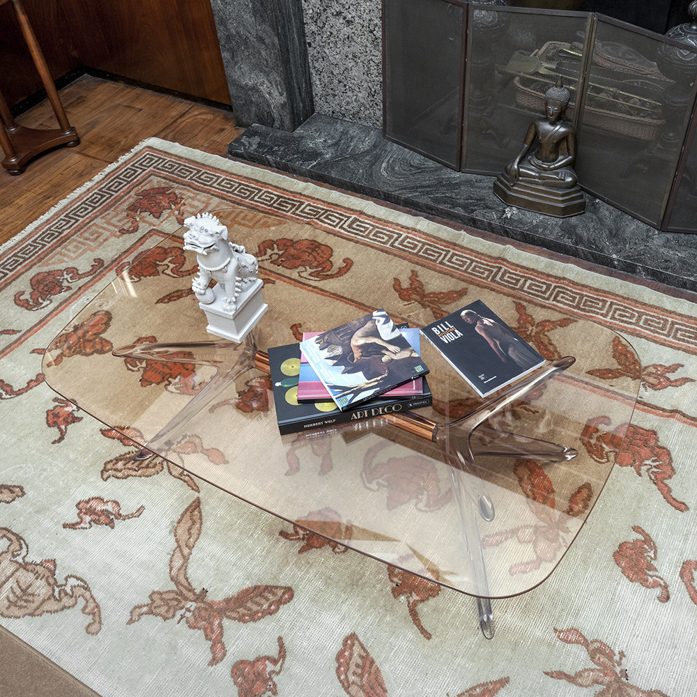 Keep it contemporary in the home with this Blast table from Kartell. A wonderfully modern coffee table, it has a laminated crystal top available in three chic shades. Designed by Philippe Starck, it's finished with eye-catching transparent technopolymer legs joined with a metallic aluminium pipe. Key features: * Coffee table * Material: thermoplastic polymer, aluminium, laminated crystal * Dimensions: H40xW130xD80cm * Designed by Philippe Starck * Pink laminated crystal top * Transparent thermoplastic technopolymer legs * Chrome coloured pipe detailing