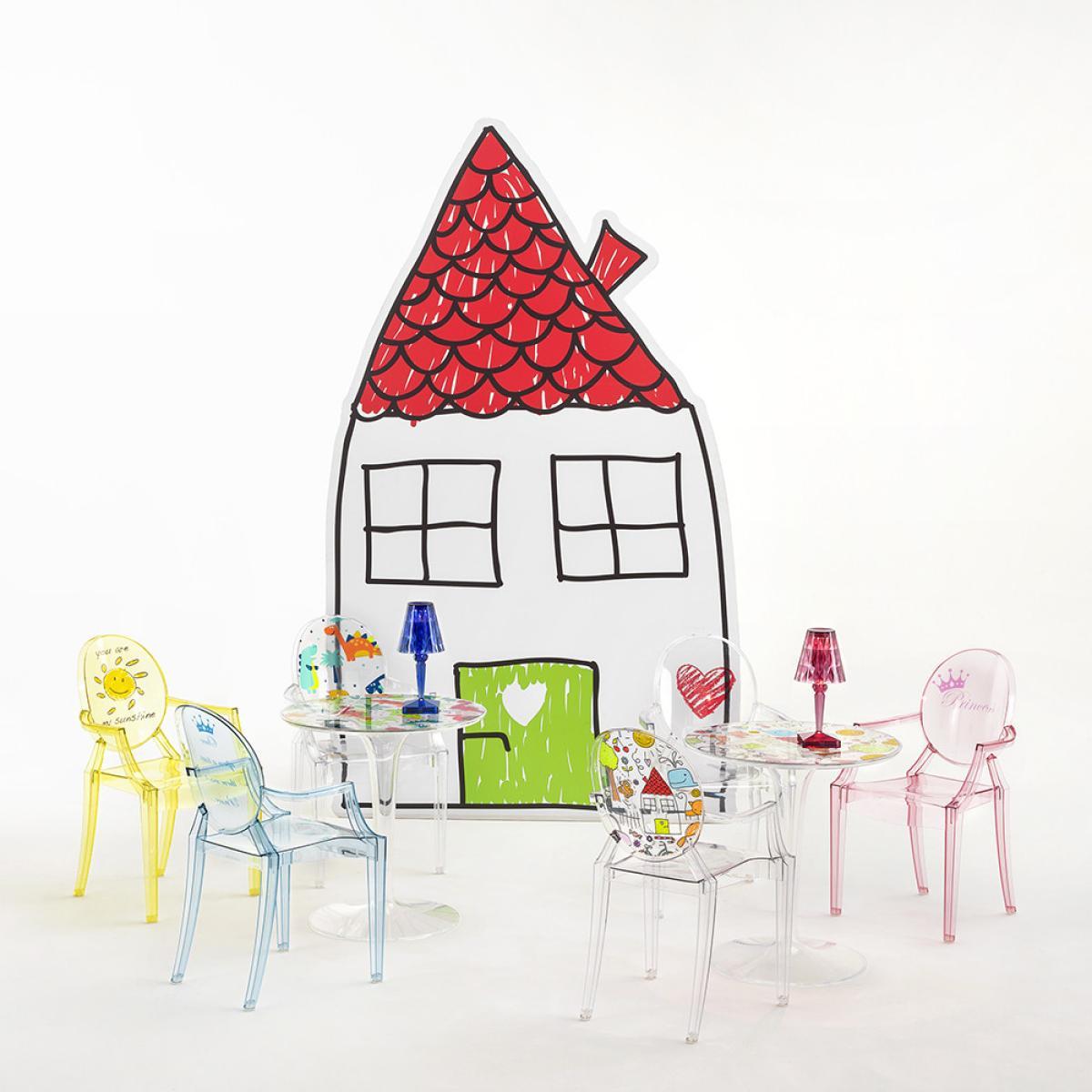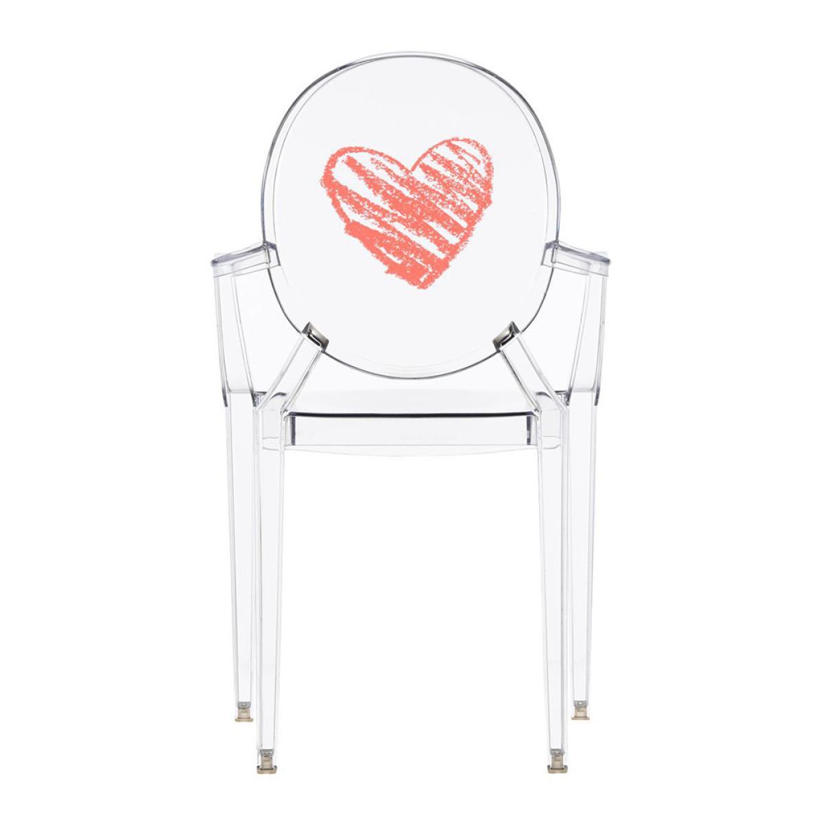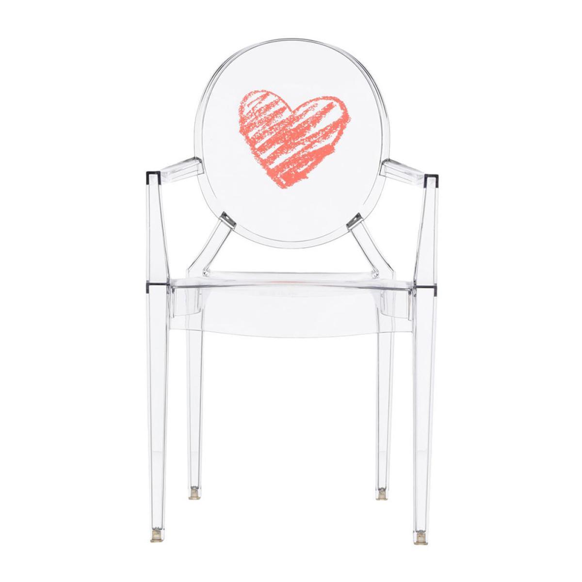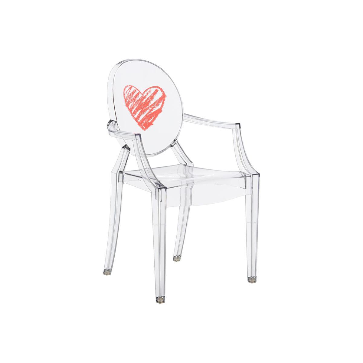Create the perfect seating space for little ones with this Children's Lou Lou Ghost Chair from Kartell. Designed by Philippe Starck, the iconic Ghost chair is redesigned for children, boasting a sketch inspired red heart. A great addition to a nursery, playroom or bedroom, several designs are available separately to suit every personality. Key features: * Children's chair * Materials: polycarbonate * Dimensions: W39.6xD36.5xH62cm * Seat height: 31.7cm * Designed by Philippe Starck * Red heart design * Suitable for outdoor use * Matching pieces available separately