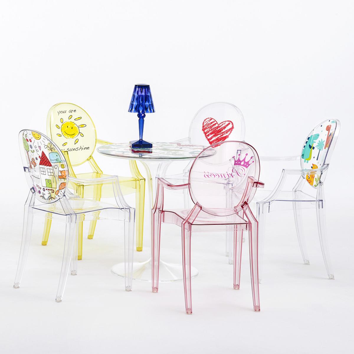 Delight little ones with this Children’s Lou Lou Ghost Chair from Kartell. A smaller version of the iconic Ghost chair, this miniature design is perfect for children, with a quirky sketch design in multicolours. Ideal for placing in a nursery, living room or bedroom, team with complementing designs available separately to complete the look.
