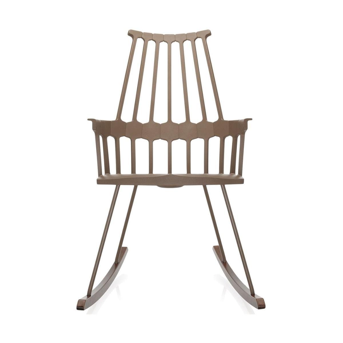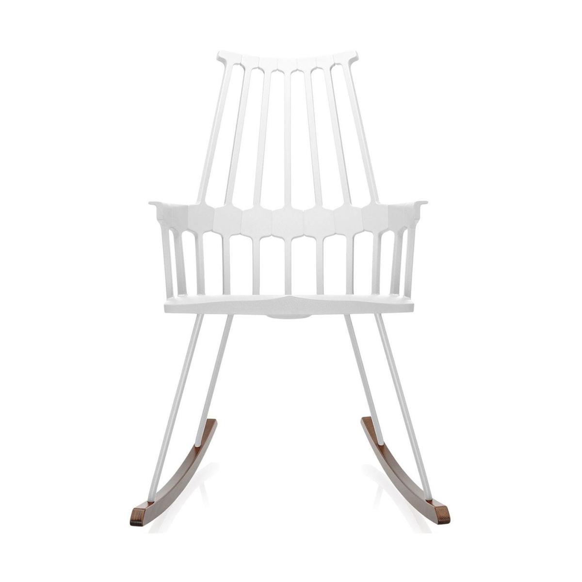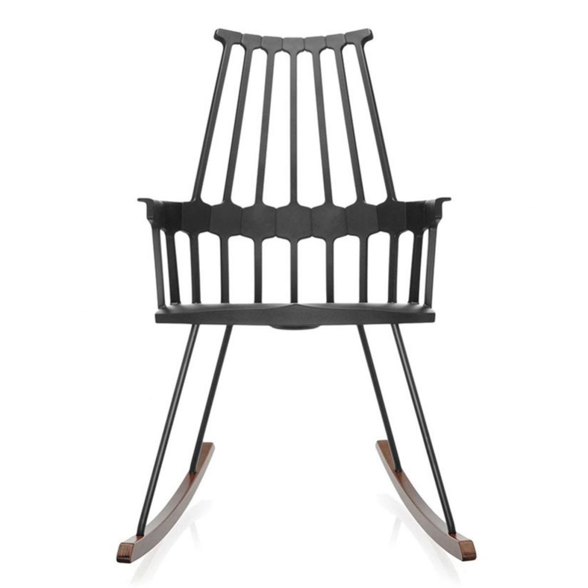 Winner of a Wallpaper magazine design award, the tall Comback makes a striking occasional chair for the living space. Reimagining traditional English style furniture, this Patricia Urquiola design features a distinctive Backrest and seat that is moulded from a single piece of plastic to follow the natural curves of the body. The unique shape of the frame has a patterned relief of contemporary geometric form, imitating the lined back bar of a Windsor chair in an entirely novel way. In keeping with this spirit of nouvelle craft, two curved natural oak legs give this design a traditional rocking motion.