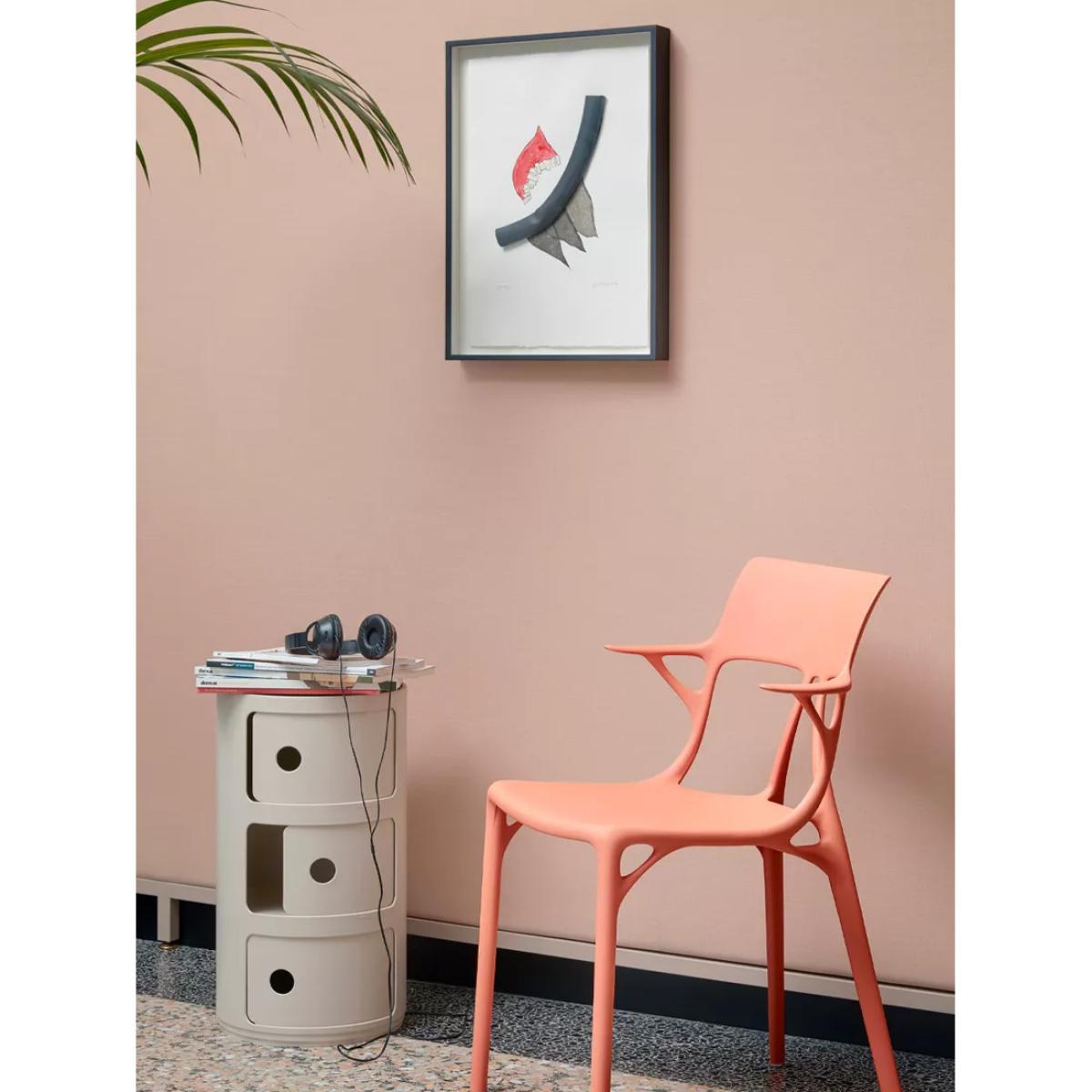 Componibili Bio is the latest iteration of Kartell's storage side table. Ongoing research and innovation in industrial processes enabled the design of this table, which is produced with a bio-polymer made from renewable raw materials, derived from non-GMO agricultural waste not intended for the food chain. It conforms with the UN 2030 Agenda for Sustainable Development and has obtained international TÜV Austria certification with the maximum star rating. Its stacked, three storage structure is compact, functional and incredibly sturdy and available in a matt finish. Want to see it first? You may want to see and get a feel for the furniture in one of our shops before ordering. We'll be able to tell you where the range you'd like to view is on display.
