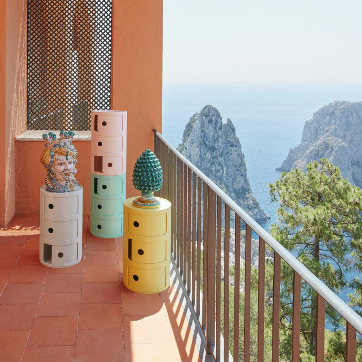 I love this pink Componibili for its playful yet practical approach to garden storage. Its bright hue injects a pop of colour into outdoor spaces, making it perfect for adding personality to patios or balconies. Stylistically, it works well within contemporary or eclectic gardens, where bold accents are appreciated. For styling tips, consider pairing it with simple planting arrangements or light greenery to let the colour stand out. It’s also versatile enough to be used indoors, such as in utility rooms or conservatories, offering a neat storage option that adds a touch of fun. Practicality-wise, its rounded shape and durable material make it a robust choice for outdoor use, while the accessible design allows for effortless organisation of gardening tools, accessories or even outdoor textiles.