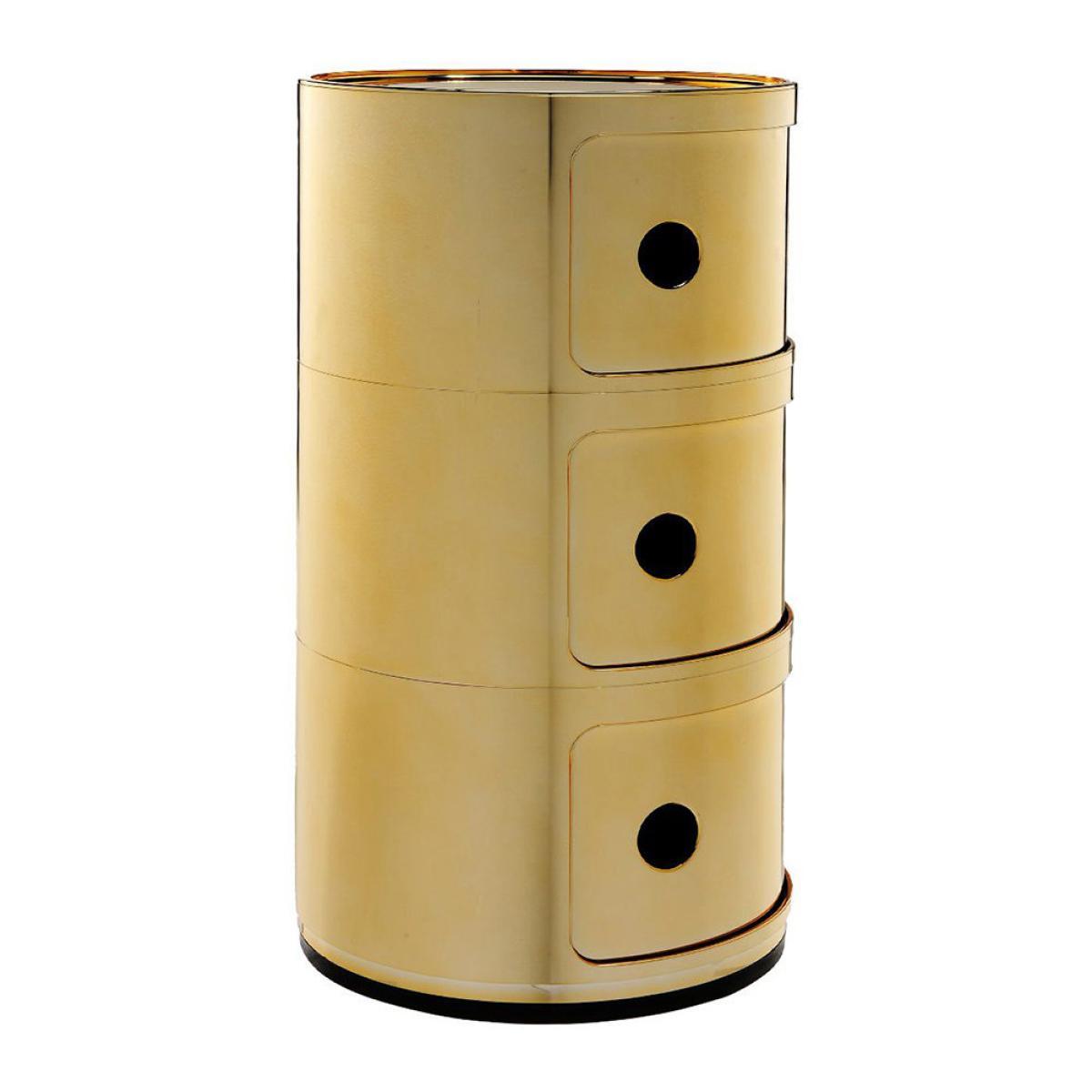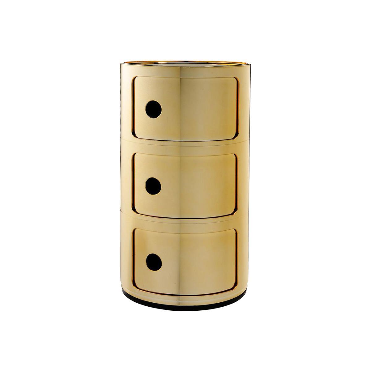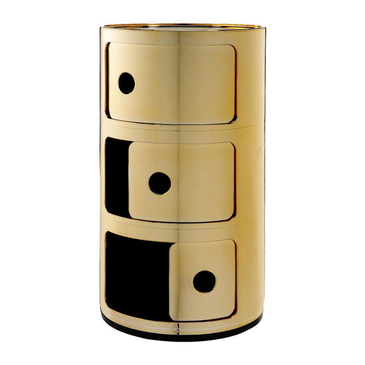 Bring contemporary glamour to your home with this Componibili storage unit from Kartell. Made from ABS plastic, this unit has a striking gold colour and a chic modern look. With sliding compartment doors, it is fabulous placed in any setting especially bathrooms, along with more stunning homeware available from the world renowned Italian design house. For more information on Kartell products and how to care for them please see our buying guide here. Key features: * Material: metallic ABS * Dimensions: Ø32xH58.5cm * Designed by Anna Castelli Ferrieri * Futuristic style with sliding doors * More eye-catching homeware available from Kartell