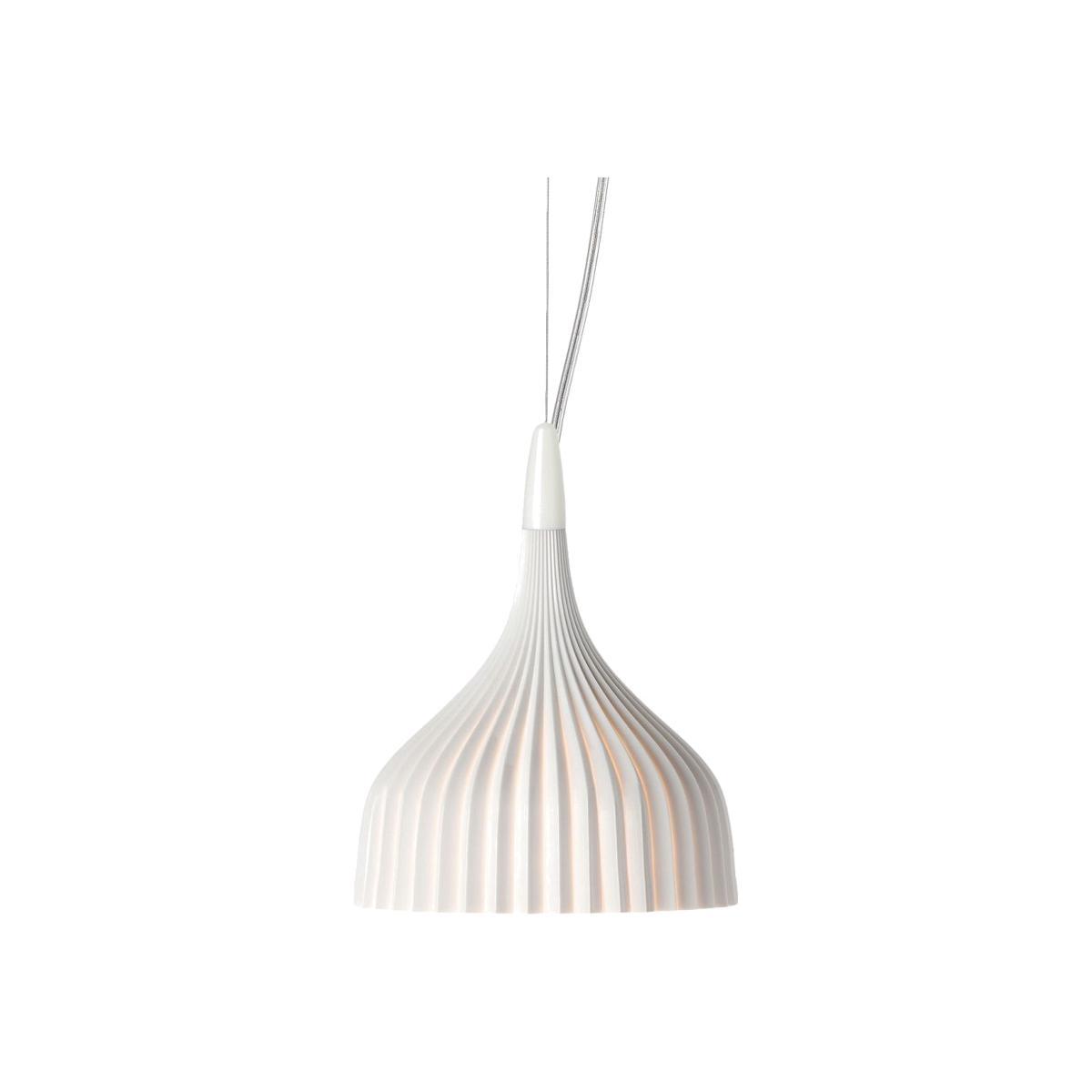 Replicating the texture of classic decorative lighting, the E’ Pendant features a pleated surface of injection moulded polycarbonate. Finished in a choice of transparent or matt tones, this postmodern design by Ferruccio Laviani hangs elegantly in both traditional and contemporary spaces.