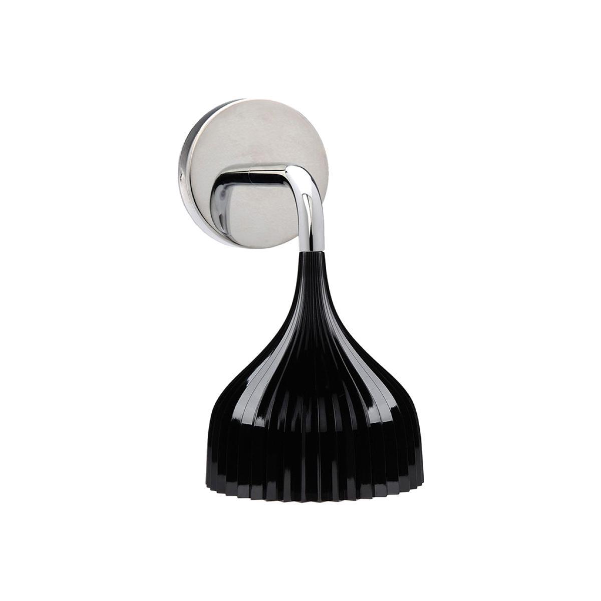 Bring a touch of iconic Kartell design to your interior with this striking E wall mounted lamp. Designed by. Ferruccio Laviani, it is simple yet thoroughly modern and features a chrome-plated arm. With a pleated polycarbonate rosette lampshade and available in several colours, the E design can be mixed and matched together to create a distinctive interior style. Please note this light requires hardwiring into the wall & operates via a switch fitted to the wall.