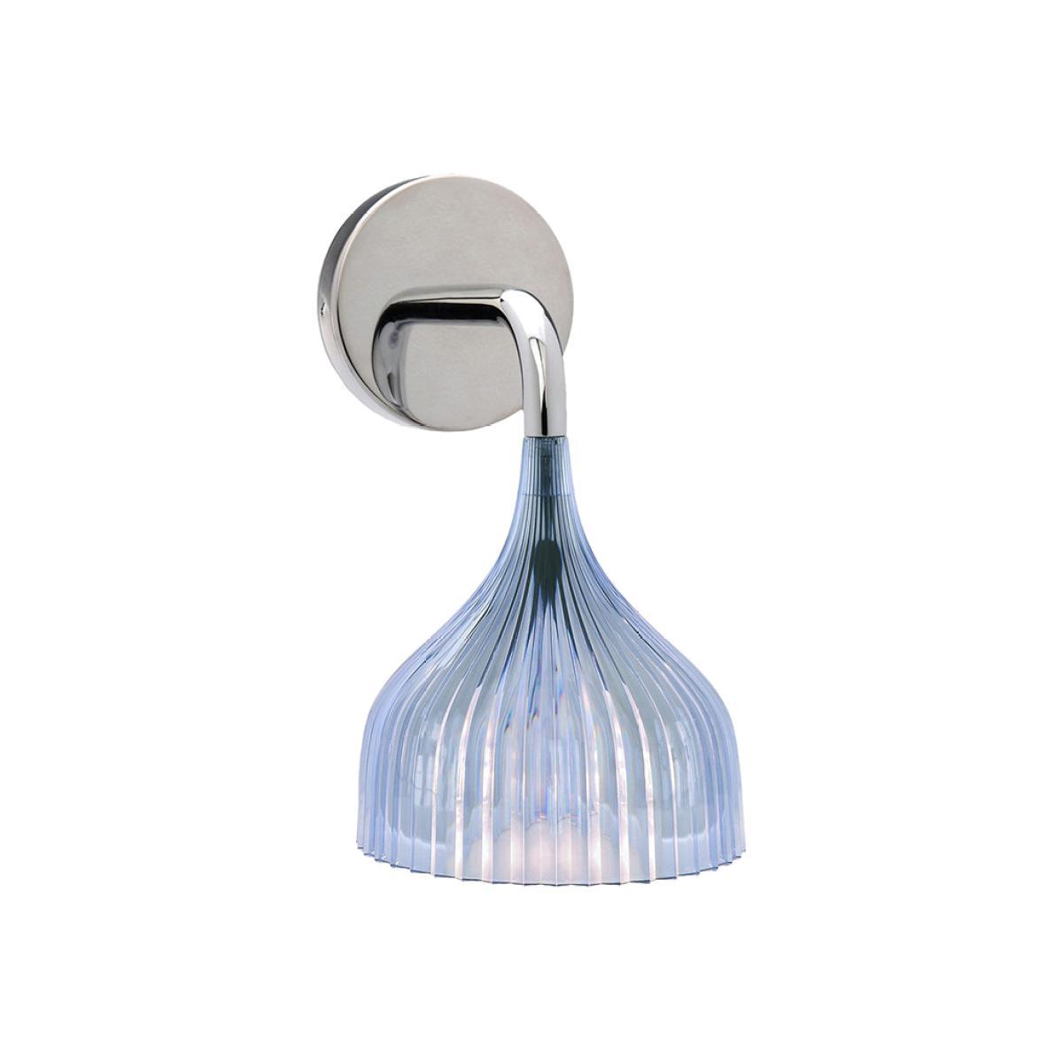 Bring a touch of iconic Kartell design to your interior with this striking E wall mounted lamp. Designed by. Ferruccio Laviani, it is simple yet thoroughly modern and features a chrome-plated arm. With a pleated polycarbonate rosette lampshade and available in several colours, the E design can be mixed and matched together to create a distinctive interior style. Please note this light requires hardwiring into the wall & operates via a switch fitted to the wall.