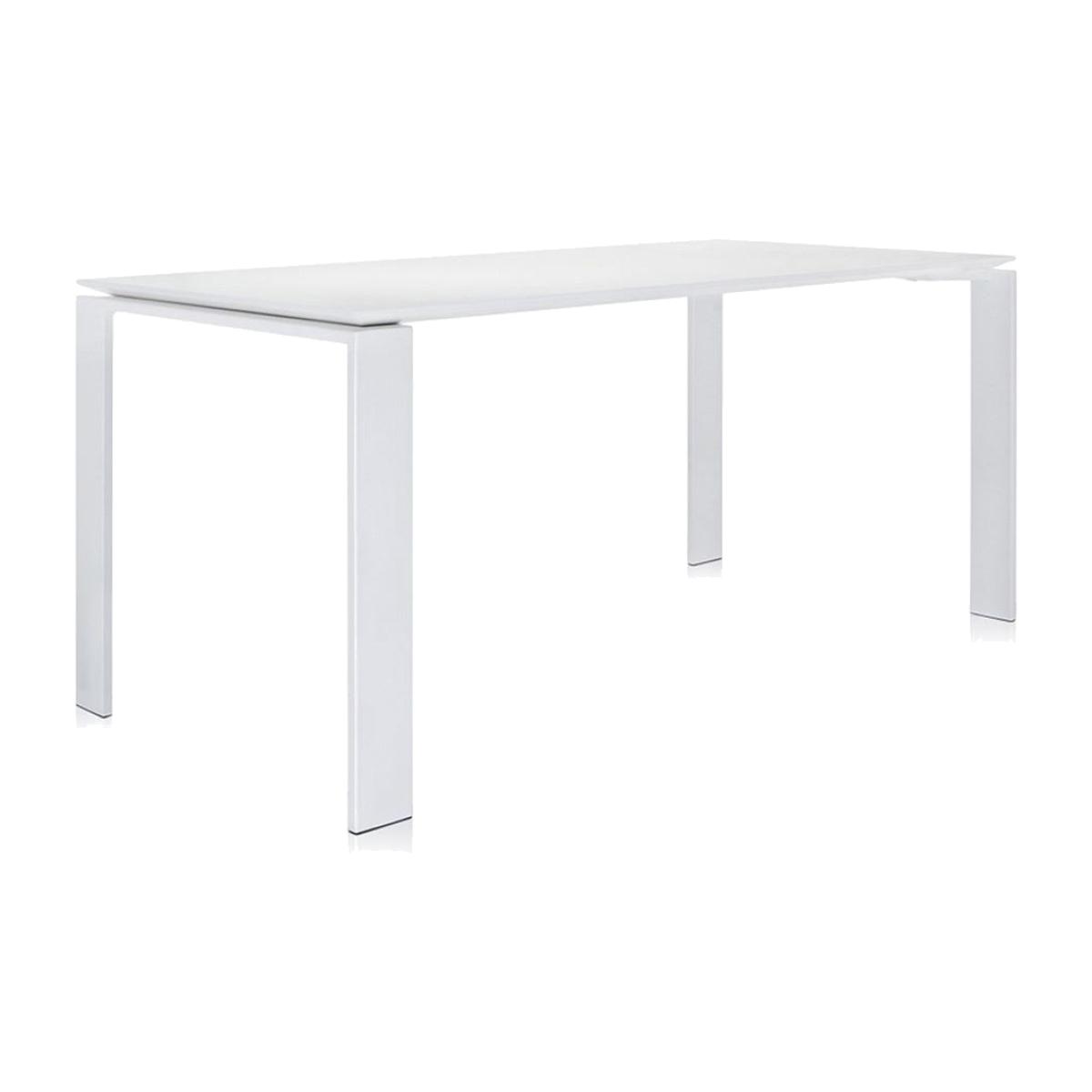 With its slender form and minial white finish this dining table caters perfectly to contemporary styled interiors. Designed by Ferruccio Laviani, this geometrically shaped table combines modern materials and finishes to create a stand-out piece for the dining space. Laminated in a choice of speckled aluminium or smooth scratch-proof laminate, the large rectangular table top has an angled cut along the undersides that gives the appearance it is gently hovering above the frame. The most striking feature of Four is its long panelled legs, which are made from steel and formed at opposite angles to create a novel design.