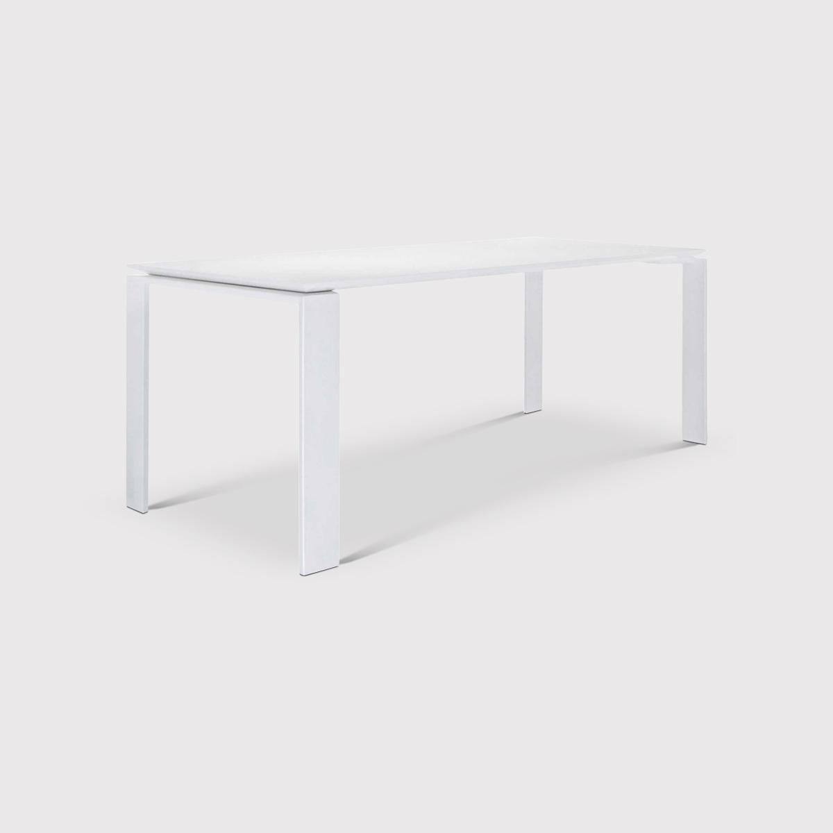 If youre looking for a sleek, contemporary table to fill your outdoor space, look no further! The Kartell Outdoor Four Dining Table is a smooth angular shape with stunning legs facing perpendicular to each other, creating a quirky, memorable piece. The top is only 2.5cm thick, with an epoxy polyester coating to ensure that in the worst weathers, its quality will never fade. We also offer a range of sizes to fit all spaces, making this a truly versatile item.