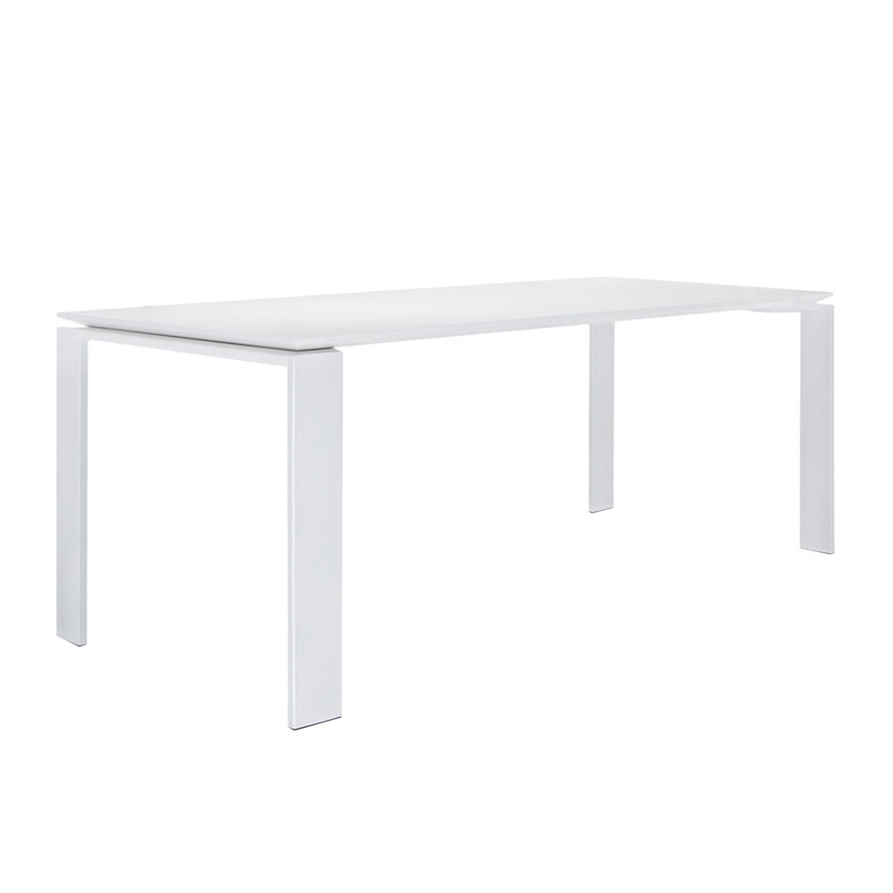 Keep it contemporary in the home with this Four outdoor table from Kartell. Fabulous for patios and terraces, this outdoor dining table is strikingly modern with it smooth angular shape and bright white shade.