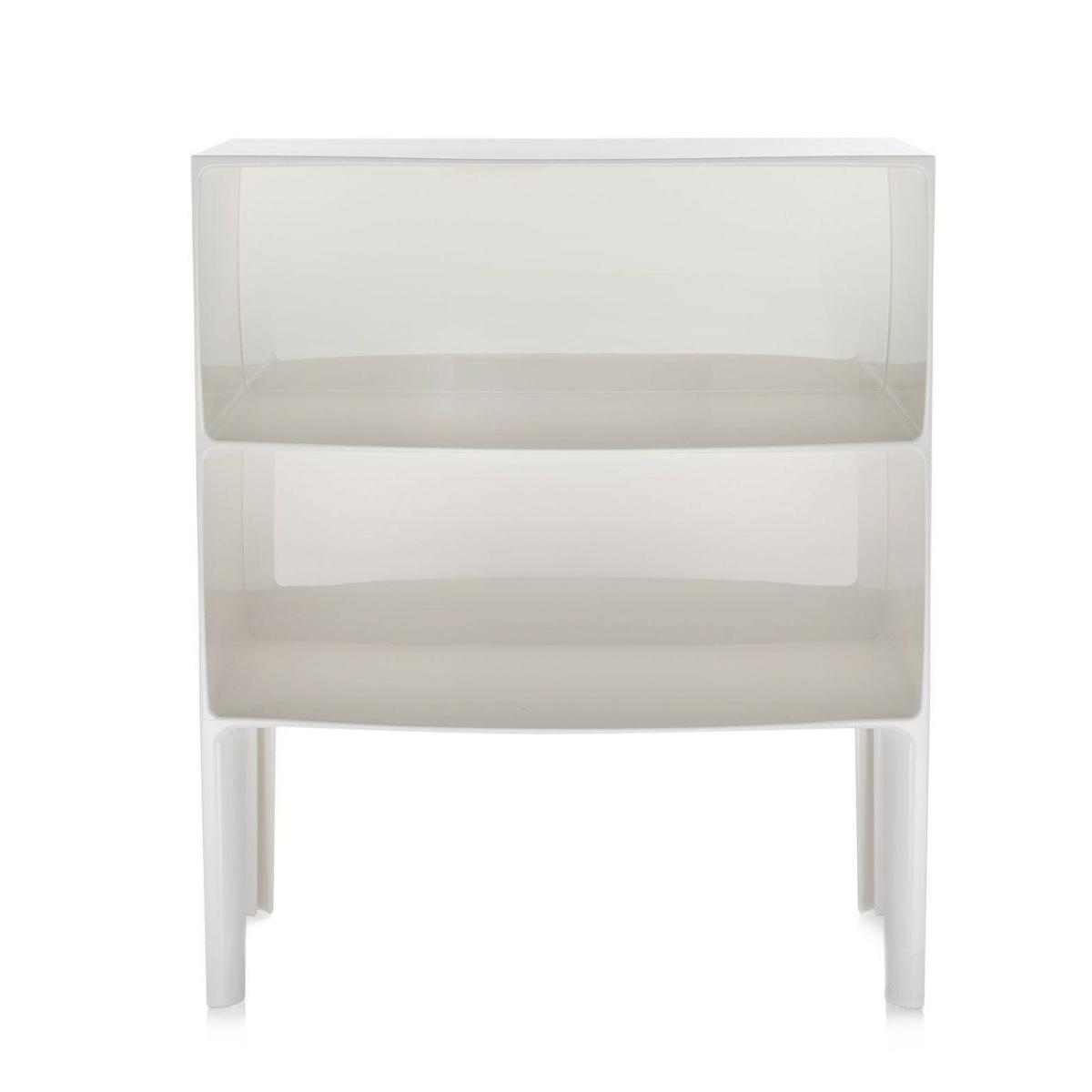 Shifting perspectives, the Ghost Buster creates an ethereal effect through its sleek, glossy surfaces. Designers Philippe Starck and Eugeni Quitllet rely on Kartell’s innovative manufacturing processes to achieve this side table’s seamless finish, forming its boxy shape and raised legs from a single sheet of durable plastic that can be finished in a choice of solid of transparent tones.