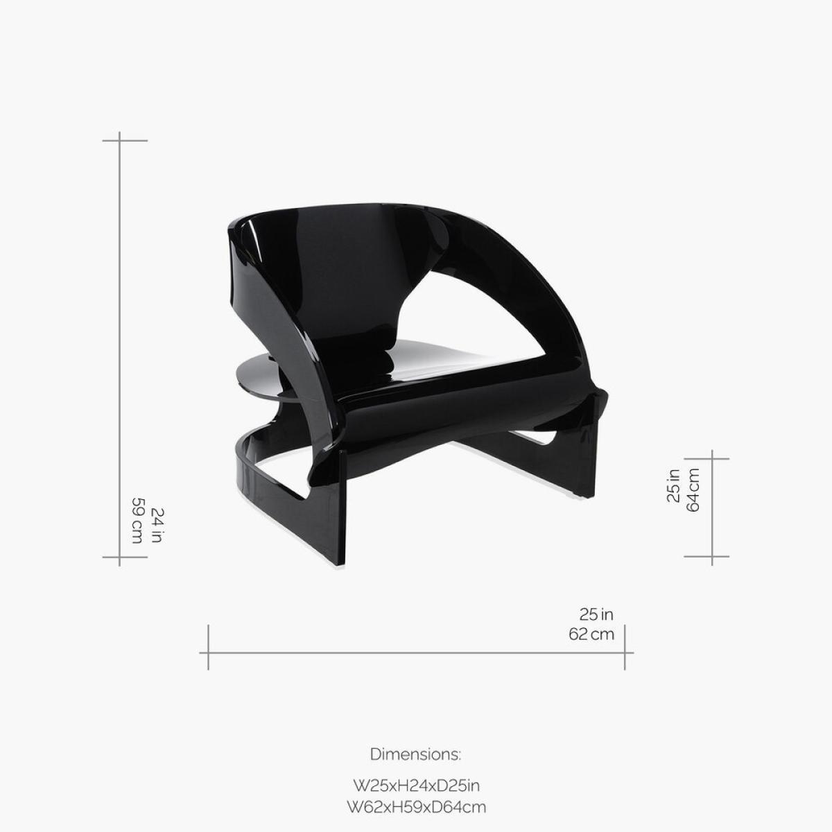 The black Joe Colombo armchair makes a bold statement as a dining chair, blending a sculptural form with practicality. I love how its sleek, modern silhouette can elevate both contemporary and minimalist interiors, as well as add a pop of interest to more eclectic spaces. It works well paired with glass or wooden tables, creating a streamlined look. For styling tips, consider keeping surrounding decor minimal to let the chair stand out, or mix textures by introducing soft textiles like plush cushions or a textured table runner to soften the overall aesthetic. Its distinctive shape also makes it suitable for use in lounge areas or as statement pieces in open-plan settings.