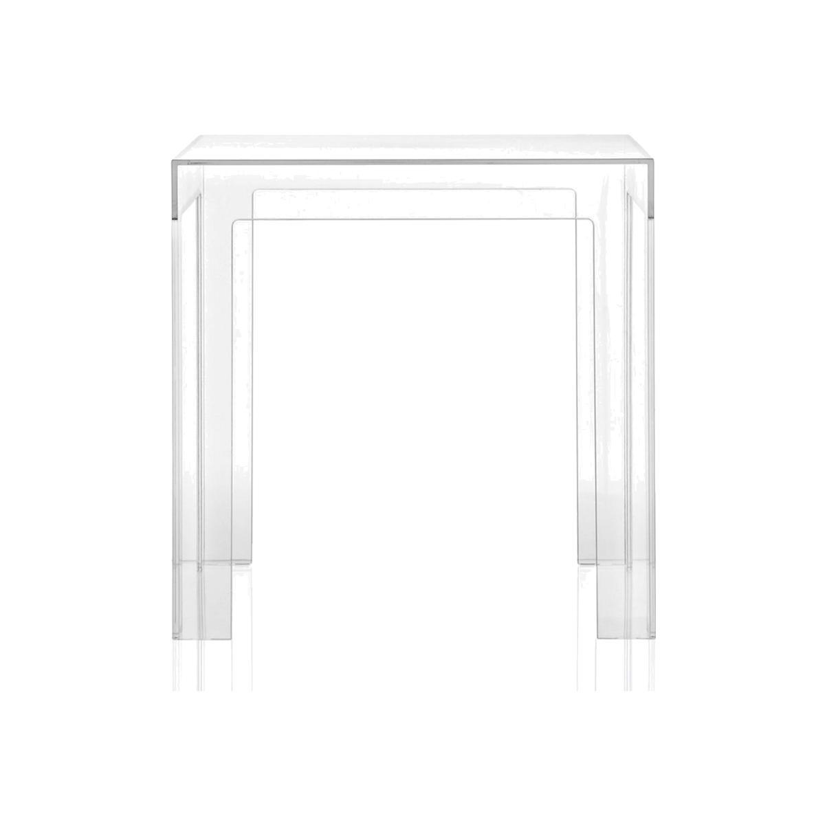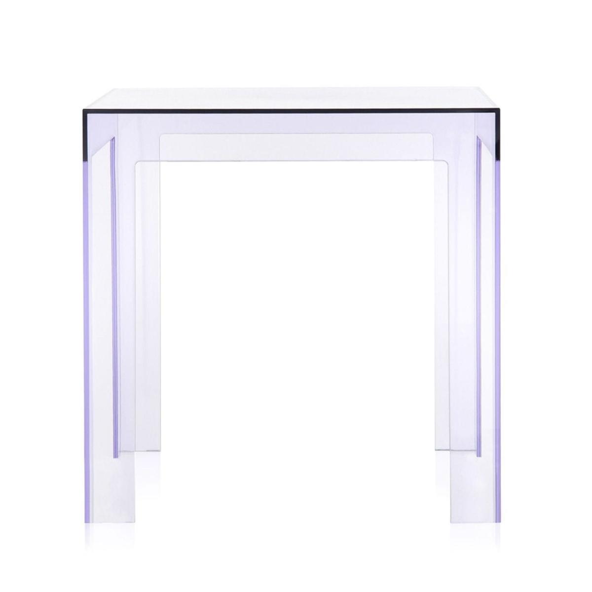 Available in a range of playful, pastel tones and clean, clear finishes, this sharp edged table slots into any stylish space. Designed by Paolo Rizzatto exclusively for Kartell, the Jolly contrasts sleek modern form with the transparent or reflective gloss of its smooth surfaces.