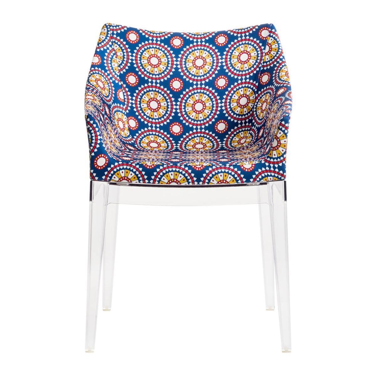 Make a bold statement in your home with this Madame chair from Kartell. Made from polycarbonate, this chair features a bold patterned seat cover that is part of the La Double J Collection and transparent legs. Designed by Phillipe Starck, this chair is perfect for use in any room of the home and is a true conversational piece. Key features: * Armchair * Material: polycarbonate * Dimensions: H80xW54xD53cm * Seat height: 47cm * Part of the La Double J collection * A project by J.J. Martin consisting of prints, designs & vintage rarities * Transparent legs * Bold pattern seat * In blue, red and yellow tones * Designed by Phillipe Starck