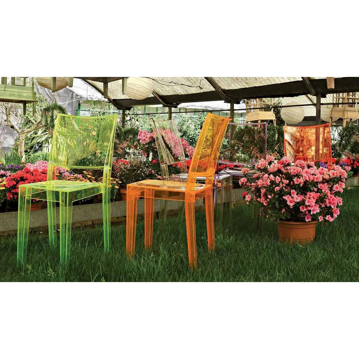 A pioneering design, La Marie is the world’s first transparent chair made from a single polycarbonate mould. Creating elegant shadows and refractions of light, this innovative chair is made up of a sharp angled seat and curved backrest all dyed in a selection of bright shades.