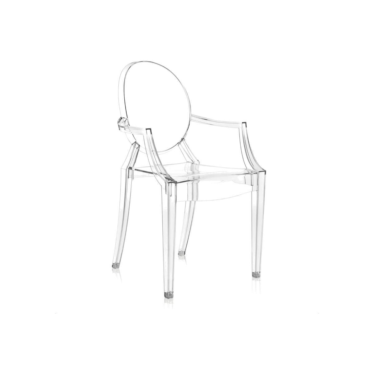Design. Ergonomically constructed to remain comfortable whilst crafted with intriguingmodern materials, the Louis Ghost Armchair from Kartell has a beautiful design that combines an elegant balance of clean lines and smooth curves that complement its transparent aesthetic perfectly. Featuring a high back and armrests that provide supported sitting, the Kartell Louis Ghost Armchair, Crystal is ideal for updating any space with cool, contemporary style.