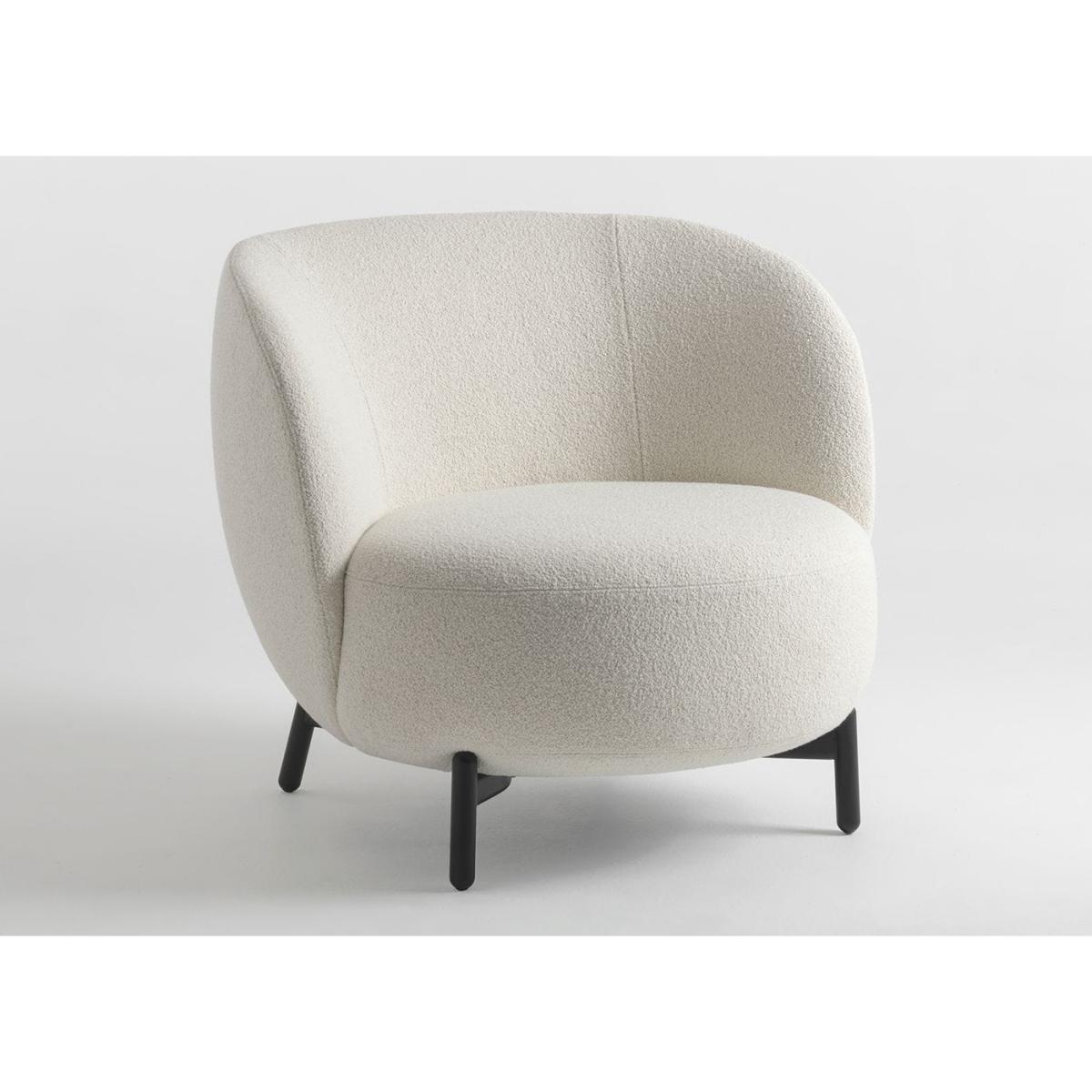 I’m a fan of the Luna chair for its clean curves and textured bouclé finish - it feels both modern and snug without dominating the room. Its simple white tone and slim black legs work particularly well in Scandi-inspired or pared-back contemporary schemes, where it can act as a soft focal point against pale walls or timber floors. For styling, try placing it beside a slender side table in oak or marble, then add a muted cushion in greys or blush to introduce a subtle contrast. It also sits neatly in a corner reading nook - just pair with a floor lamp and a low-pile rug to complete the look.