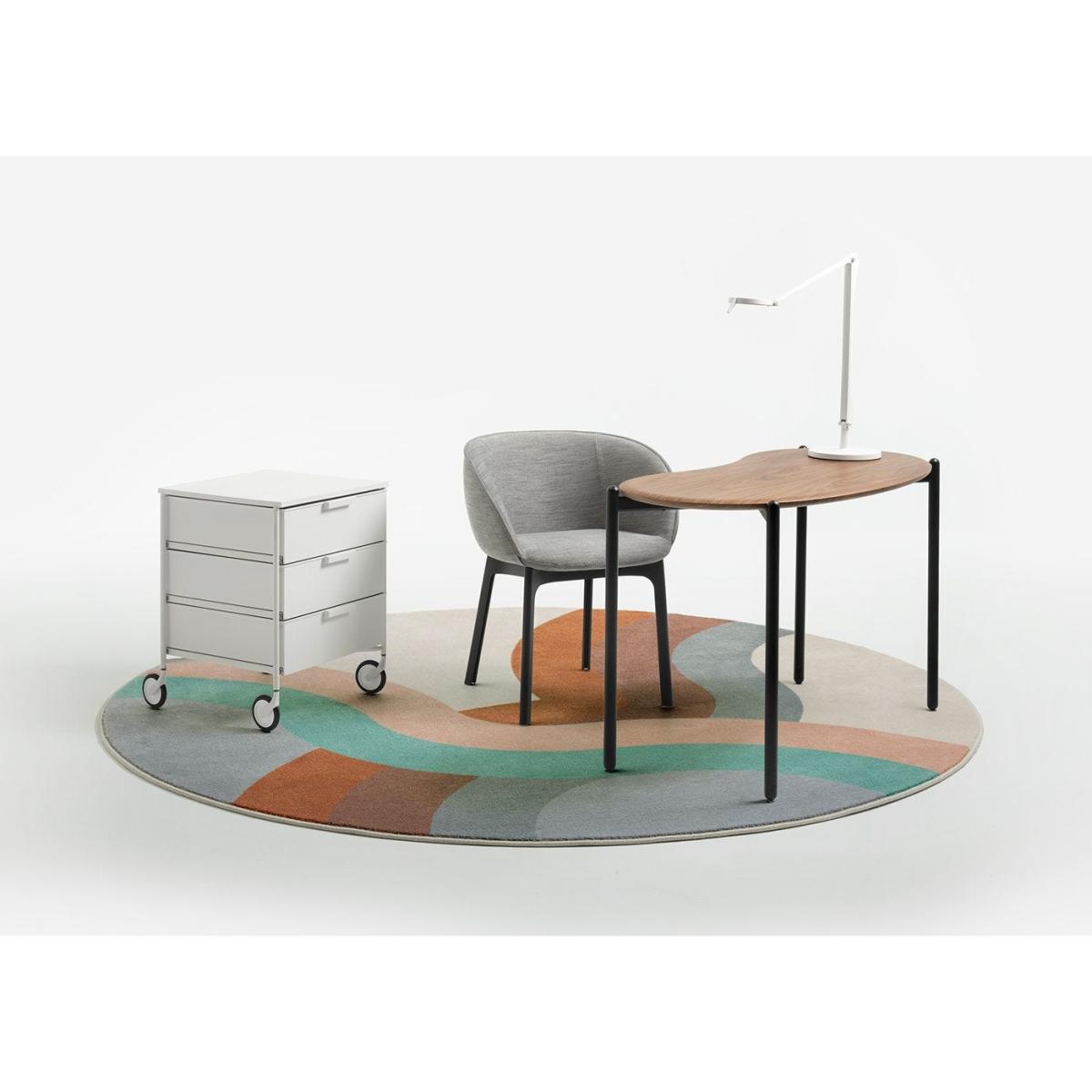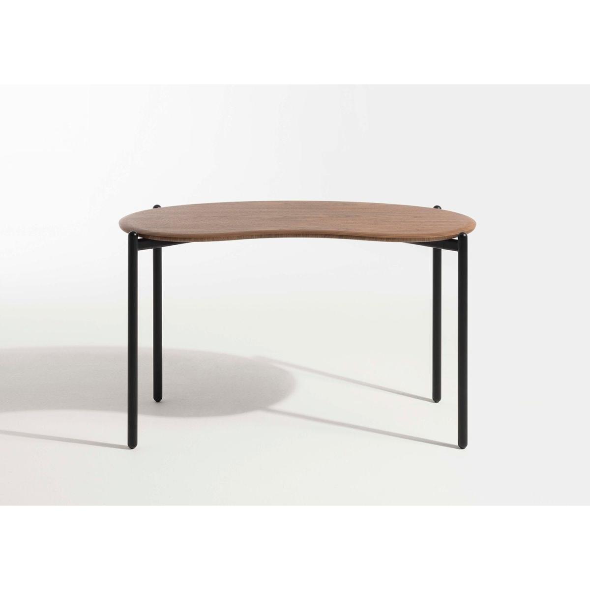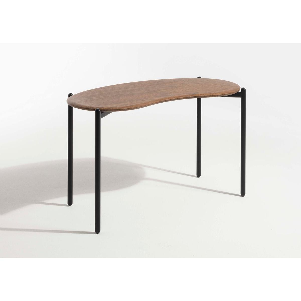 The Lunat desk, designed by Patricia Urquiola for Kartell made with FSC certified wood, creates the ideal solution for a home smart working station as well as a desk in a hotel room. The powder-coated legs grow slender up to the bean-shaped top; the top is available in flamed walnut finish.