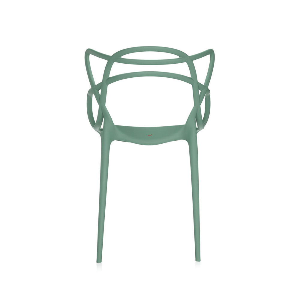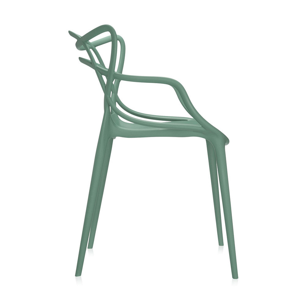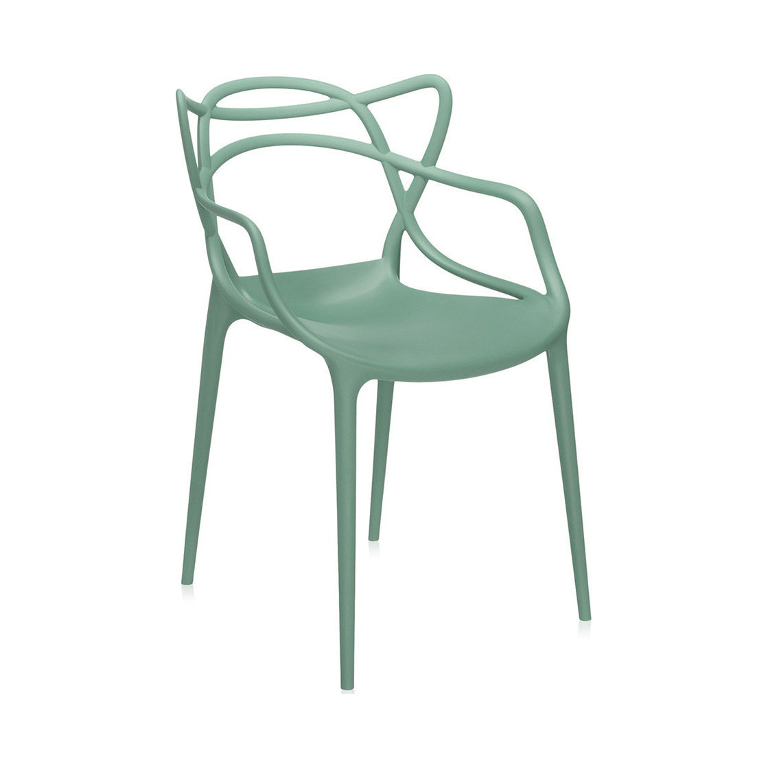 Add award winning design to your home with the Masters Chair in green from Kartell. Designed by Philippe Starck with Eugeni Quitllet this chair is a striking tribute to three iconic chairs, the 'Series 7' by Arne Jacobsen, the 'Tulip Armchair' by Eero Saarinen and the 'Eiffel Chair' by Charles Eames. Each one is evident in the cleverly reinvented design, now with a more contemporary feel it is both roomy and comfortable with a special finishing which gives it a velvet like touch. Suitable for outdoor use and available in several colours, this practical yet stylish chair design is also stackable ideal for simple storage.;This design was presented with the prestigious '2010 Good Design Award' by the Chicago Athenaeum - Museum of Architecture and Design.;For more information on Kartell products and how to care for them please see our buying guide here.
