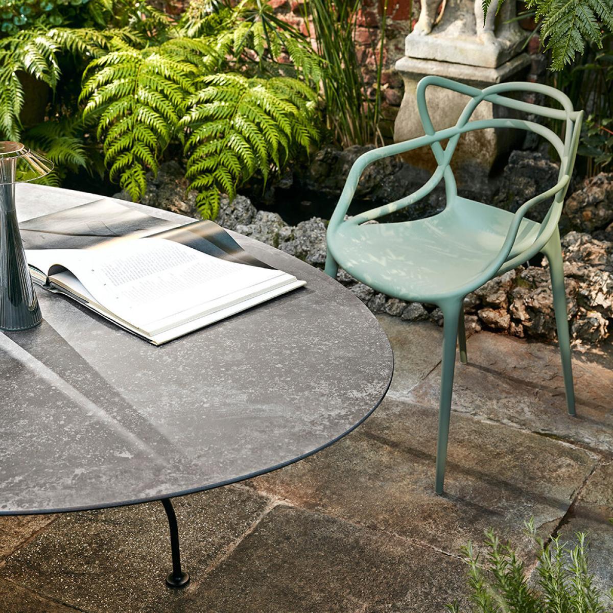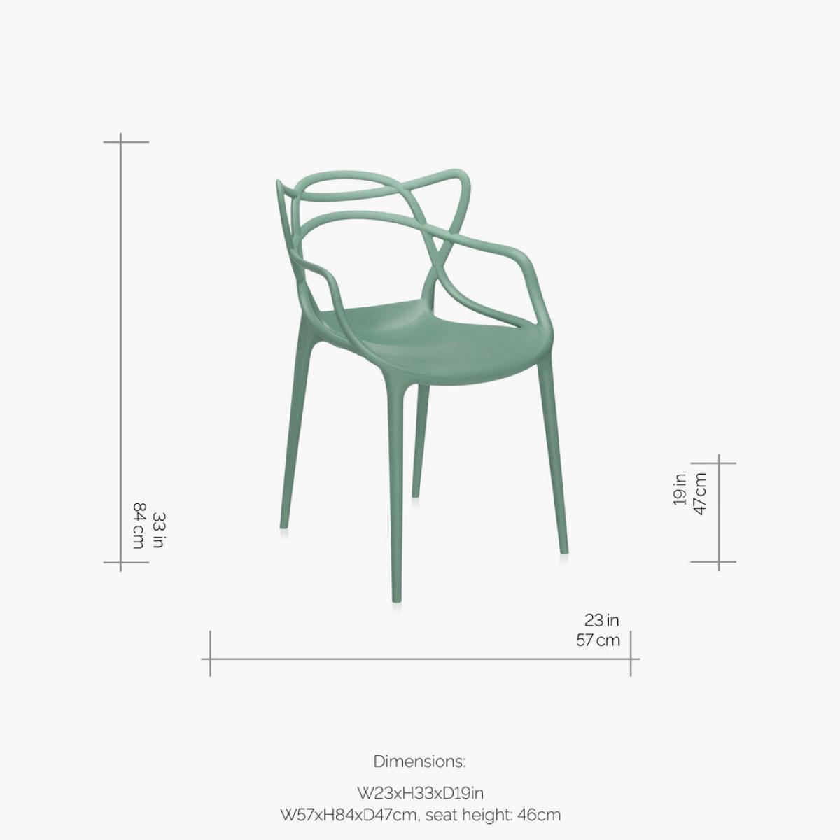 Add award-winning design to your home with the Masters Chair from Kartell. Designed by Philippe Starck with Eugeni Quitllet this chair is a striking tribute to three iconic chairs; the 'Series 7' by Arne Jacobsen, the 'Tulip Armchair' by Eero Saarinen and the 'Eiffel Chair' by Charles Eames. Now crafted from recycled plastic, Kartell have used waste materials from the industry. Suitable for outdoor use and available in several colours, this practical yet stylish chair design is also stackable and easily stored. For more information on Kartell products and how to care for them please see our buying guide. Here.