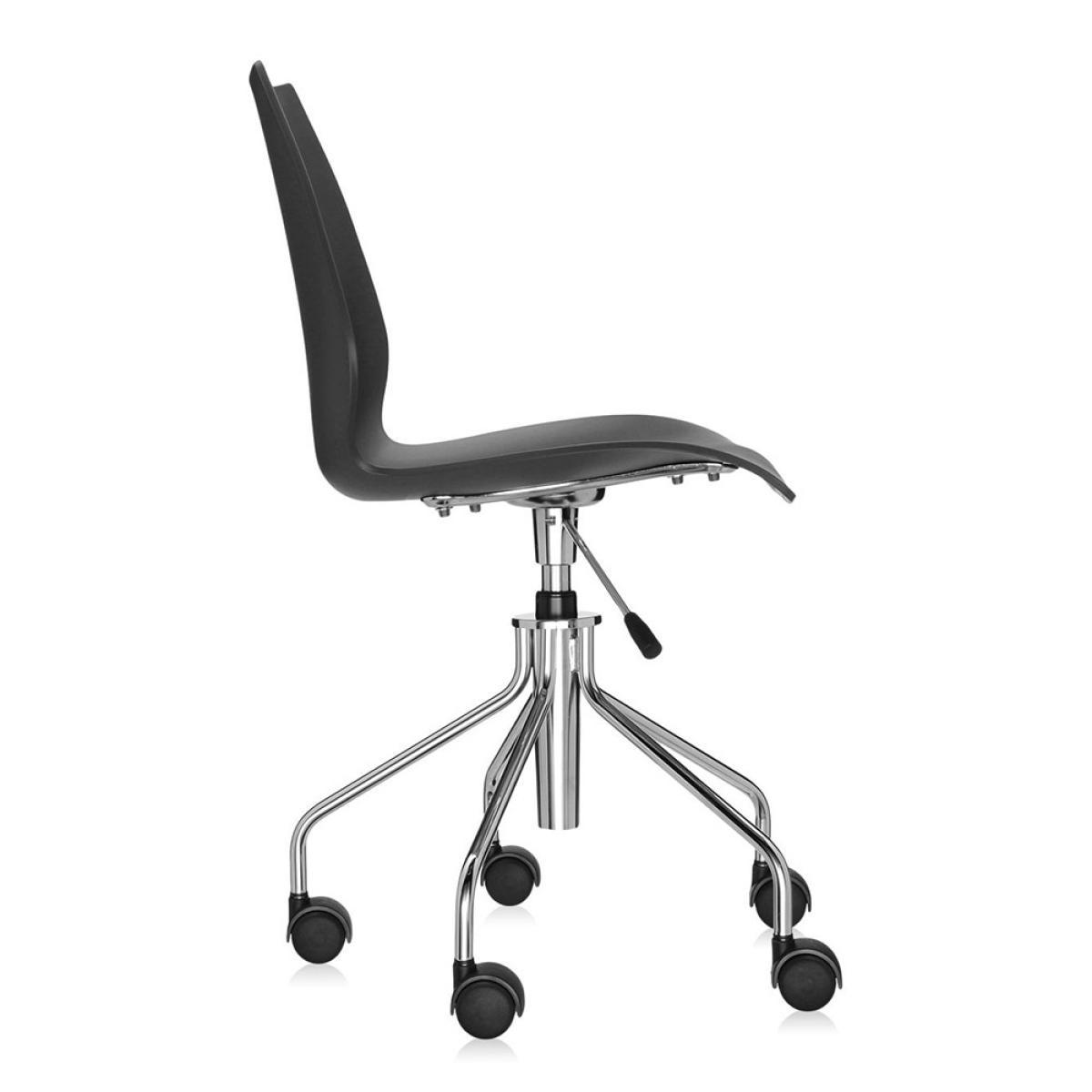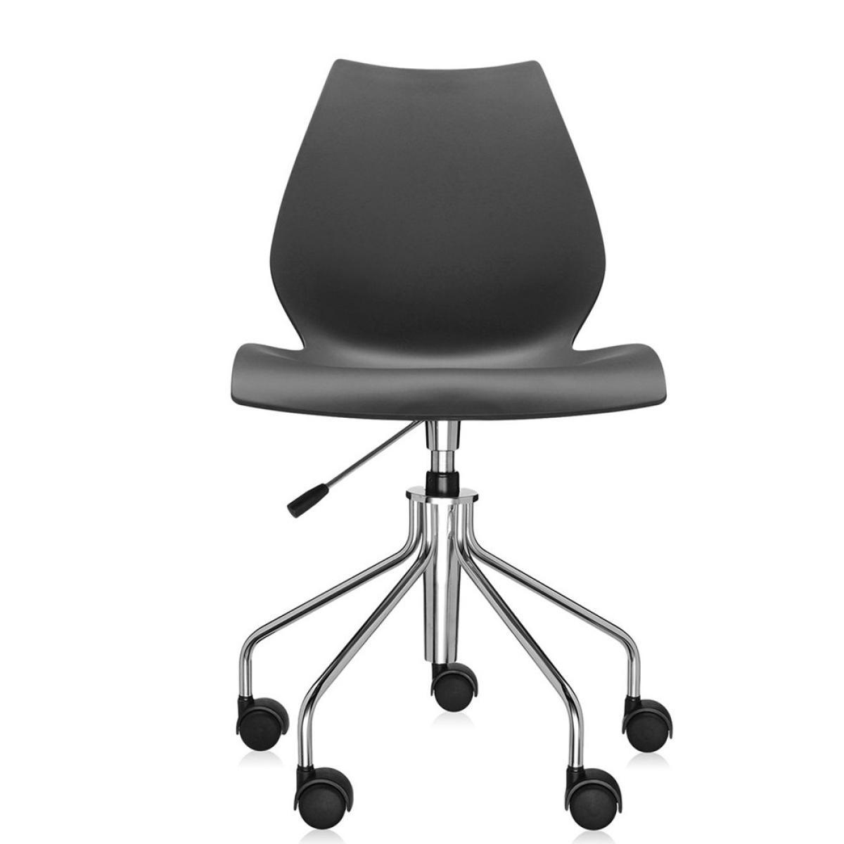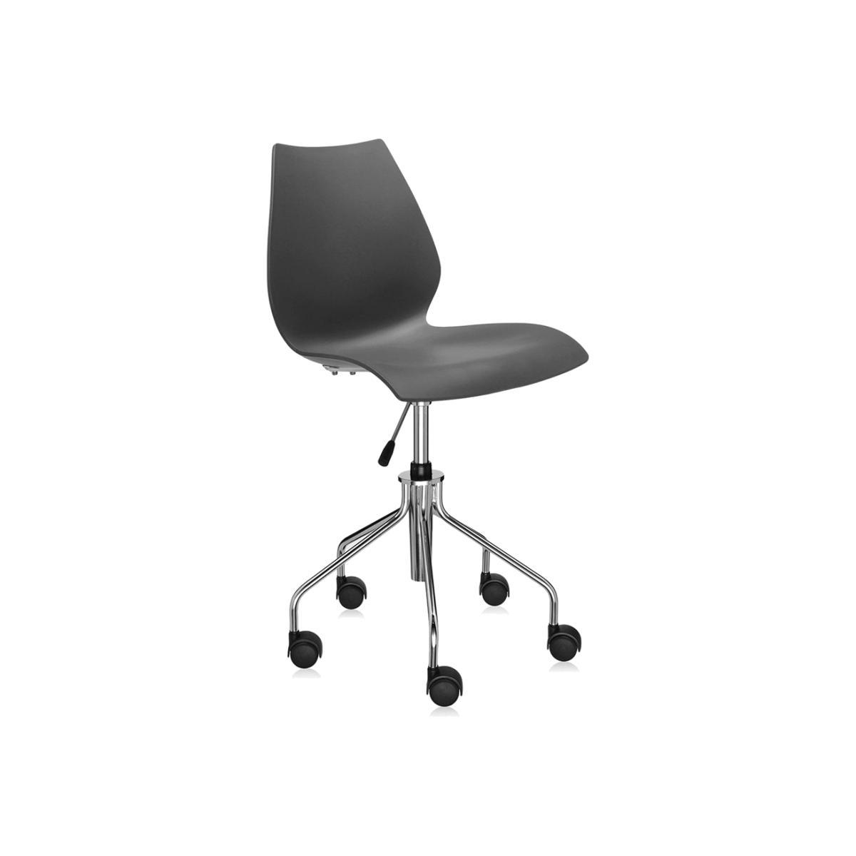 Update your interior furnishings with this stunning Maui chair from Kartell. Made from durable batch-dyed polypropylene, this elegant chair features a chrome-plated steel frame with swivel feet for ultimate ease and comfort. Perfect for updating an office or study, this chic solid colour looks great in any home. Mix and match with more colours and styles available separately to transform a room. Key features: * Material: smooth batch-dyed polypropylene * Chrome-plated steel frame * Dimensions: W58xH81-88xD52cm * Seat height: 49-57cm (adjustable) * Solid black colour * Designed by Vico Magistretti * More chairs available from Kartell