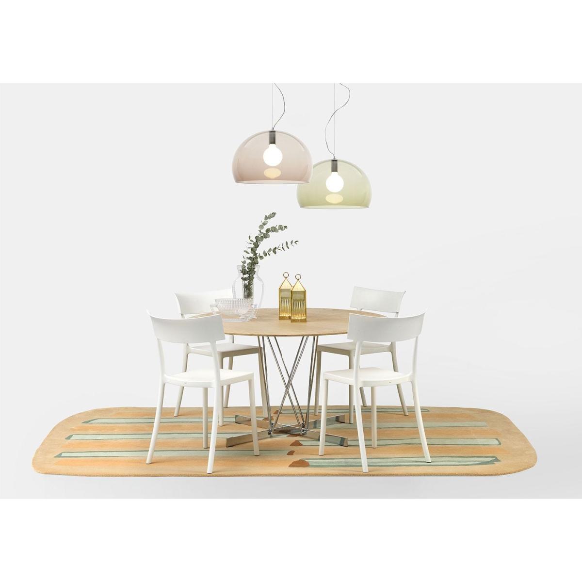 The Parays Rug by Patricia Urquiola for Kartell is designed for a colourful and enveloping living space. Made from hand-tufted and hand-cut Himalayan wool, the rug features a playful hatching pattern in eye-catching shades of orange and green. Exploring the possibilities of layering different tones, the overlapping colours follow a curved, soft, and sinuous line, giving the carpet a greater sense of movement.